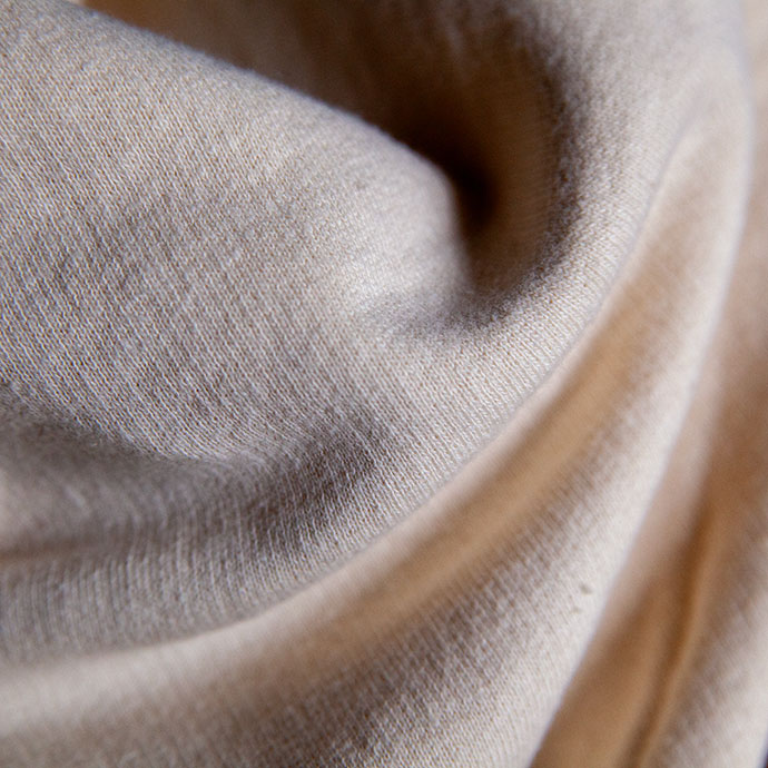 生地にはオリジナルのリサイクルコットンを使用。自然なムラ感や軽やかなふくらみがあり、素材そのものの風合いがやわらかく引き立っています。