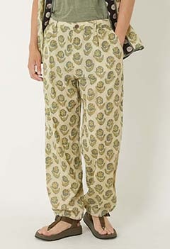 ボタニカル ブロックプリント イージートラウザーズ