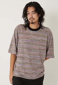 リサイクルマルチボーダー ドロップショルダーTシャツ