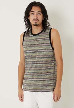 残糸を使用したリサイクルマルチボーダータンクトップです。