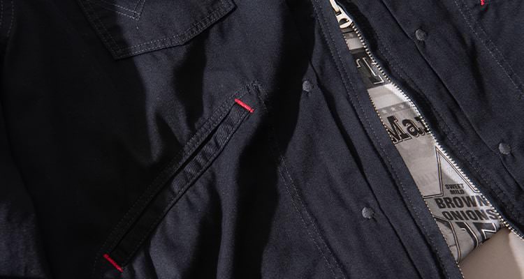 ヴィンテージを参考としながらも、今の空気感を反映させ修正を加えた特徴的なショート丈のシルエットはセットアップのジーンズとの着こなしがおススメのスタイルです。