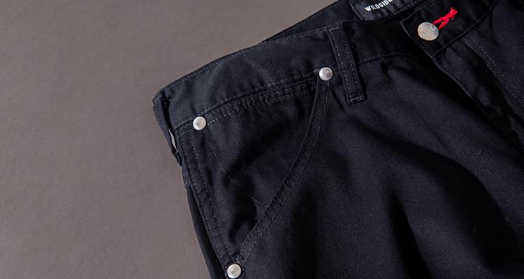 Wranglerのベーシックとなる5ポケットジーンズのディテールを踏襲し、今企画に合わせて新たに設計したワイドシルエットのジーンズ。