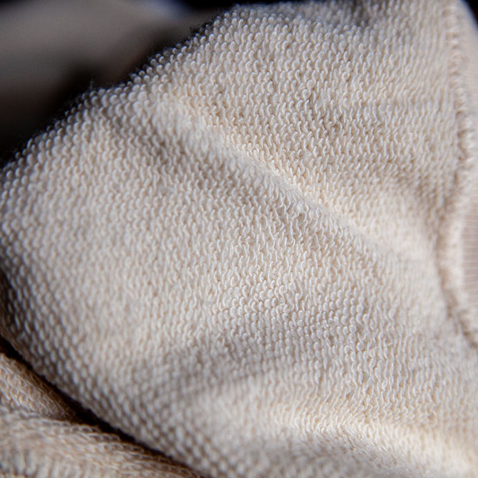 裏側には、同素材の裏毛を採用。肌あたりが柔らかく、着た瞬間から馴染む軽い着心地です。