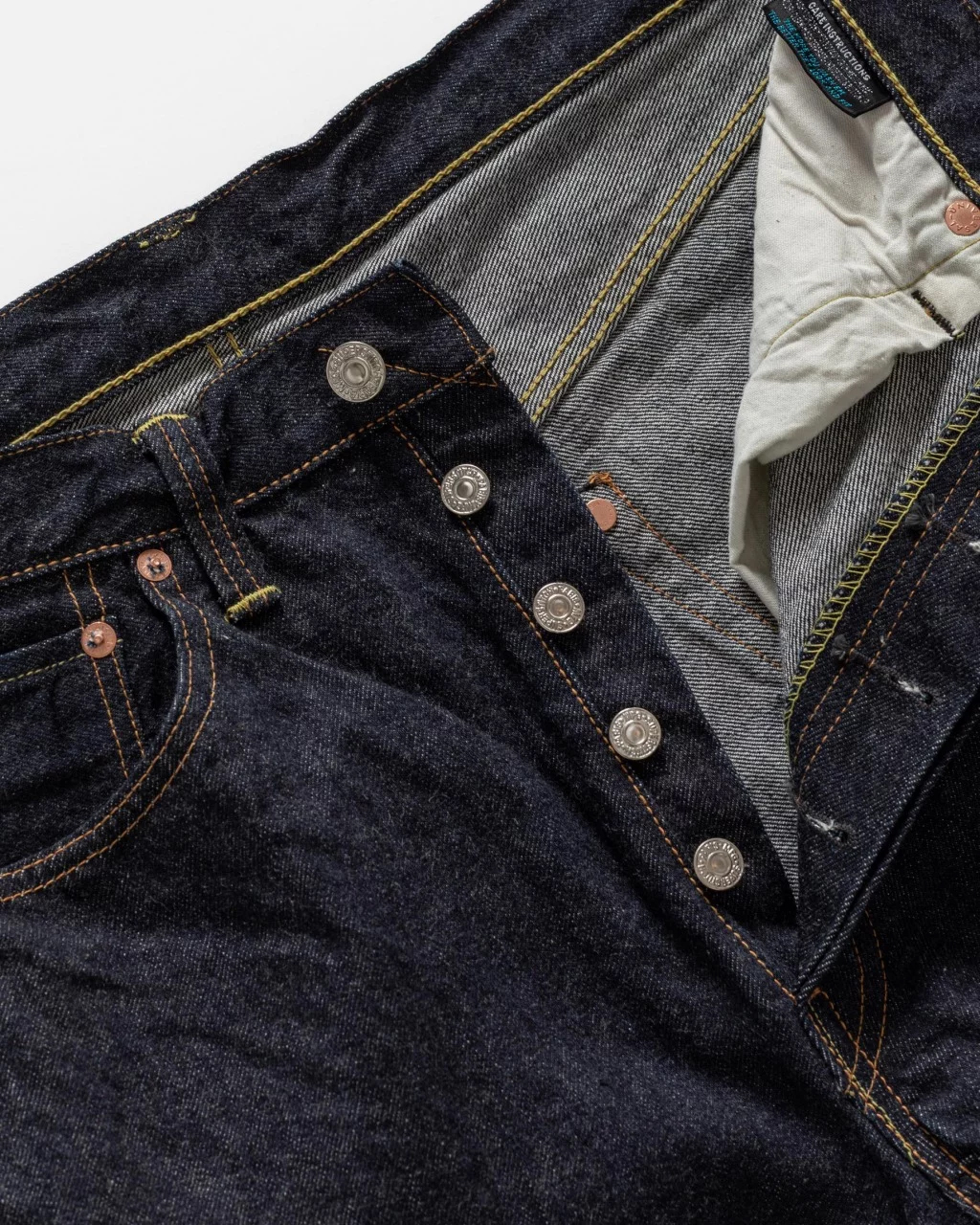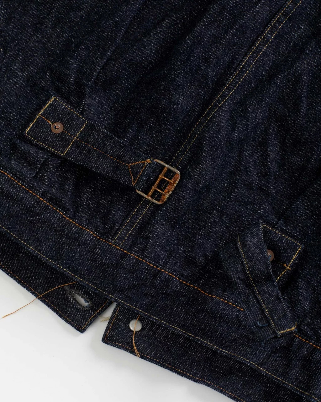 日本国内工場と共に2年間の開発期間をかけ、糸の色調からリベット、特注の電磁メッキボタンまで、当時の希少なディテールを忠実に再現しています。