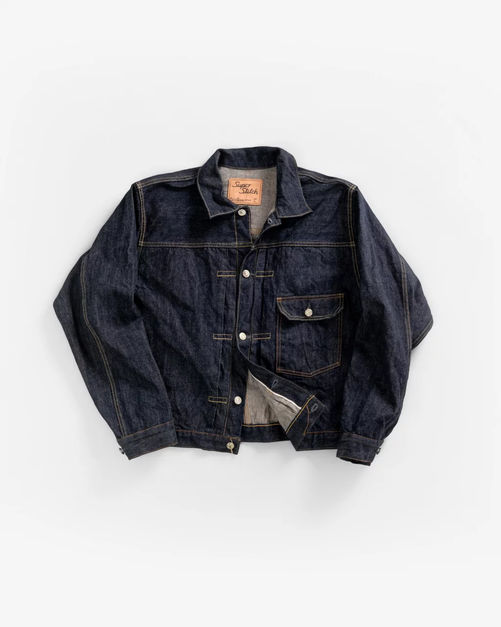 2年をかけて独自開発した13ozのセルビッジデニムは、当時の「デコボコ」とした質感を再現。Tバック仕様のオリジナルフィット、ヴィンテージ特有の歪みを再現したボタン、フリーハンドによるステッチワークなど、細部まで妥協なく作り込まれています。Superstitchの美学が詰まった、まさに究極の復刻モデルです。