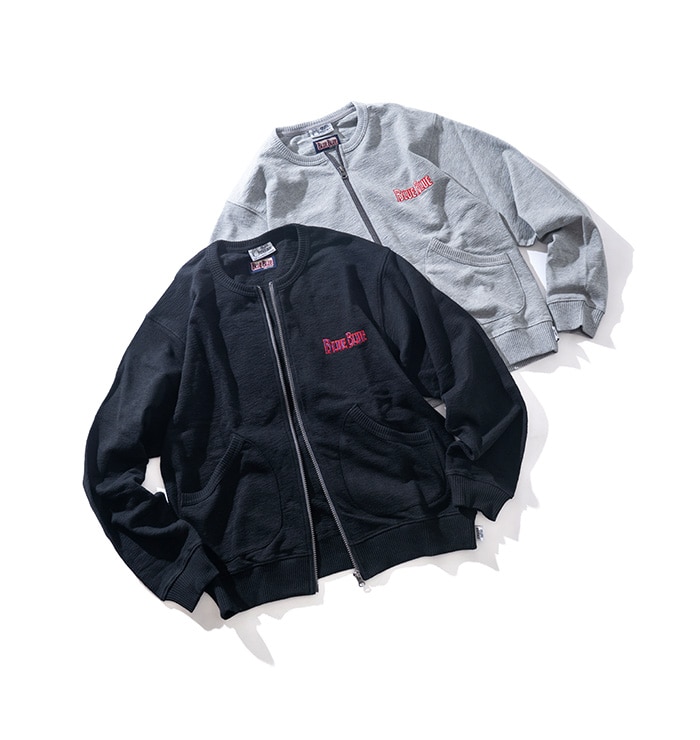 柔らかく軽い着心地が魅力のインレー素材。肌当たりの良いループ状の編地が特徴。胸元にBLUE BLUEのロゴ刺繍をあしらい、シンプルながら存在感のあるアクセントに。スウェットほど厚すぎず、Tシャツ感覚で羽織れる1着。春や秋の軽アウターとしてはもちろん、冬にはインナーとしても活躍します。ユニセックスで着用できるベーシックなデザインです。