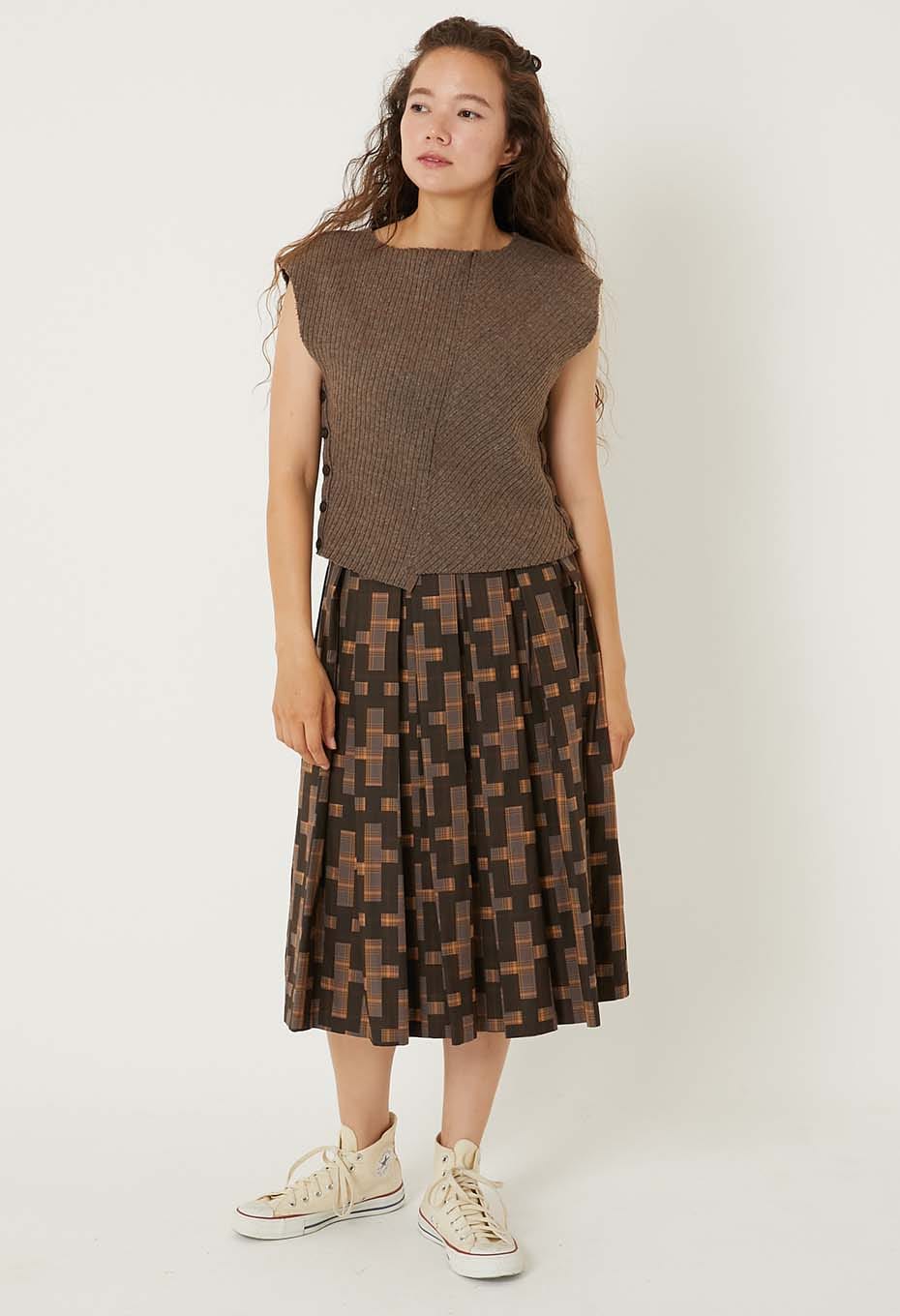 ナガシジュウジ ガンリョウプリント ボックスプリーツスカート