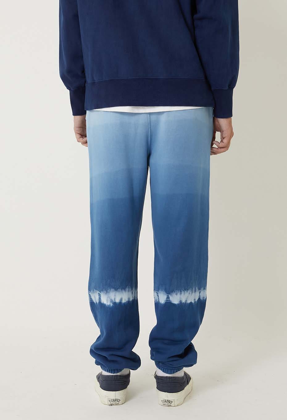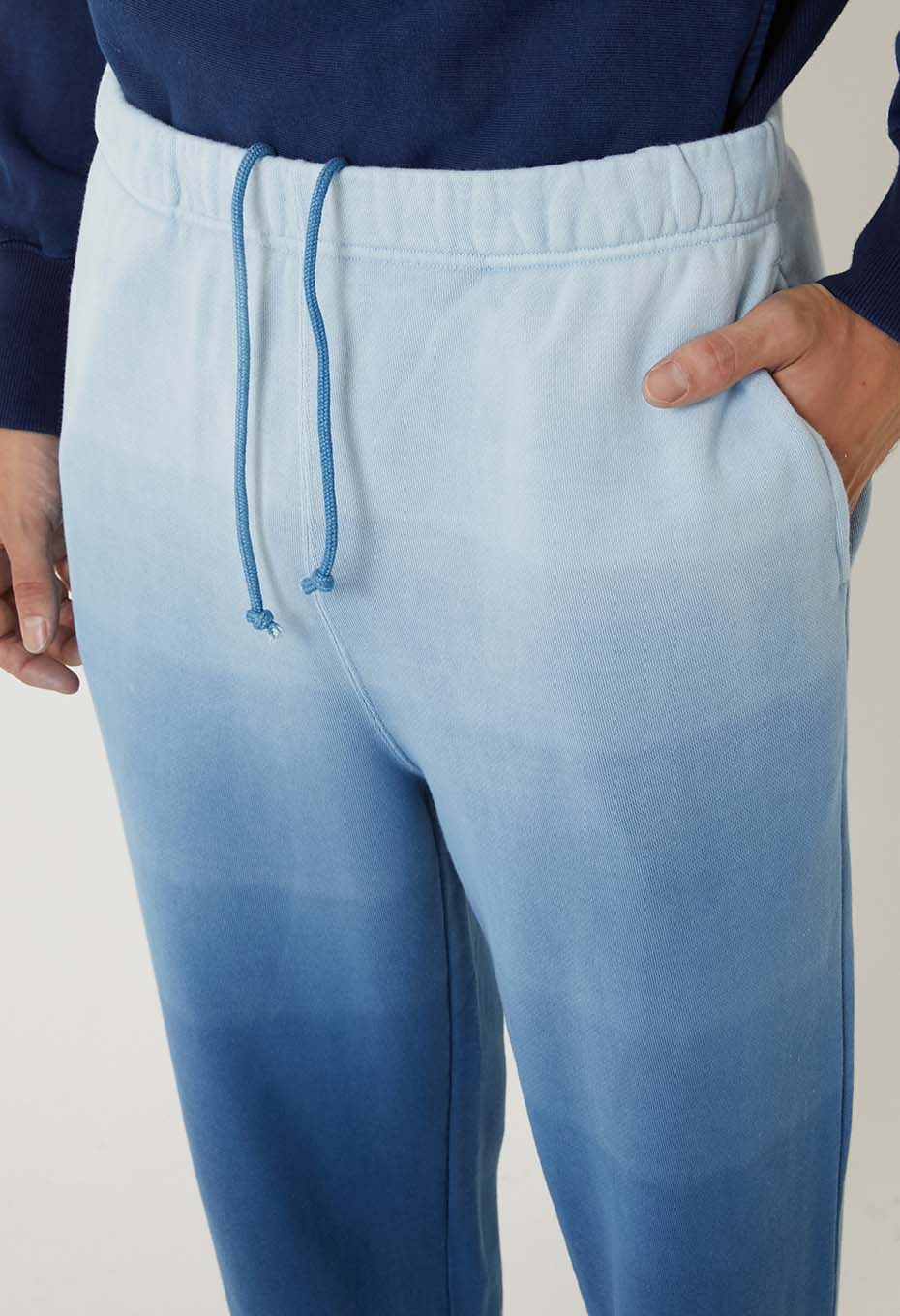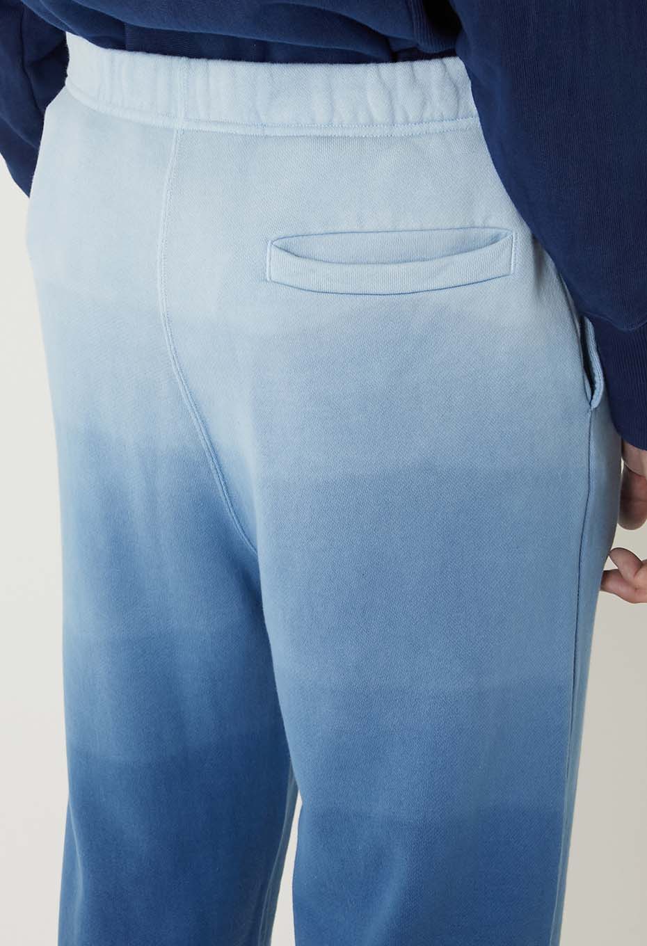 - カリフォルニア州サンホーキンバレーの雪解け水で育った非常に貴重な原綿を使用し、繊維にダメージがつかないよう手間暇をかけ、希少価値の高い特別な手法を用いて糸にしています。綿花そのものの柔らかさを楽しめる優しい風合いと美しい表面が魅力の素材です。職人によって一つ一つ手作業で施されている絞りとグラデーションカラーで黄昏時の空模様を表現しました。柔らかな素材を活かしたシンプルでやや裾にボリュームを持たせたシルエットです。裾はゴム仕様で靴の合わせによっておしゃれ感がアップ。パンツの細長い形にグラデーションの幅がきれいに表現されています。