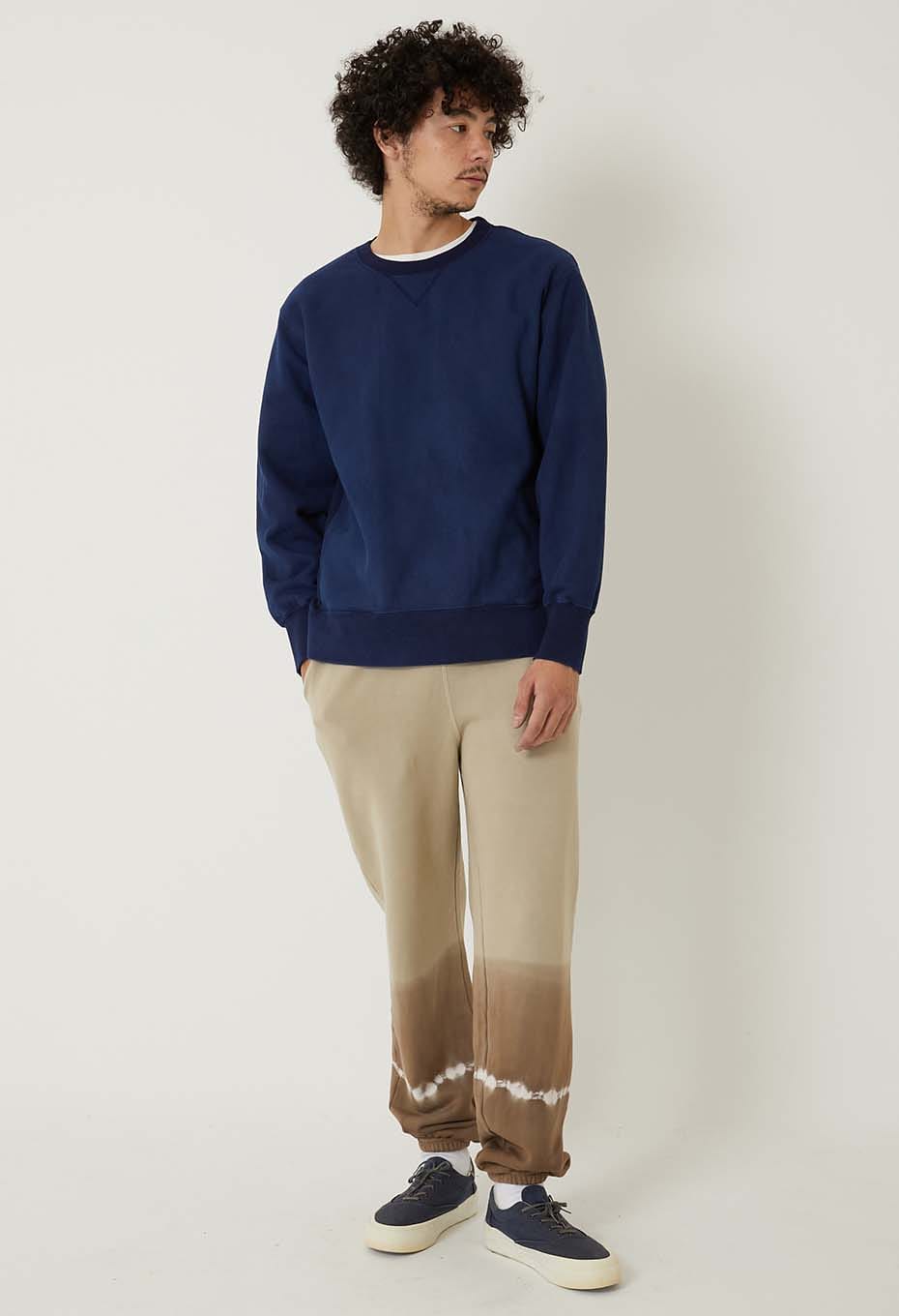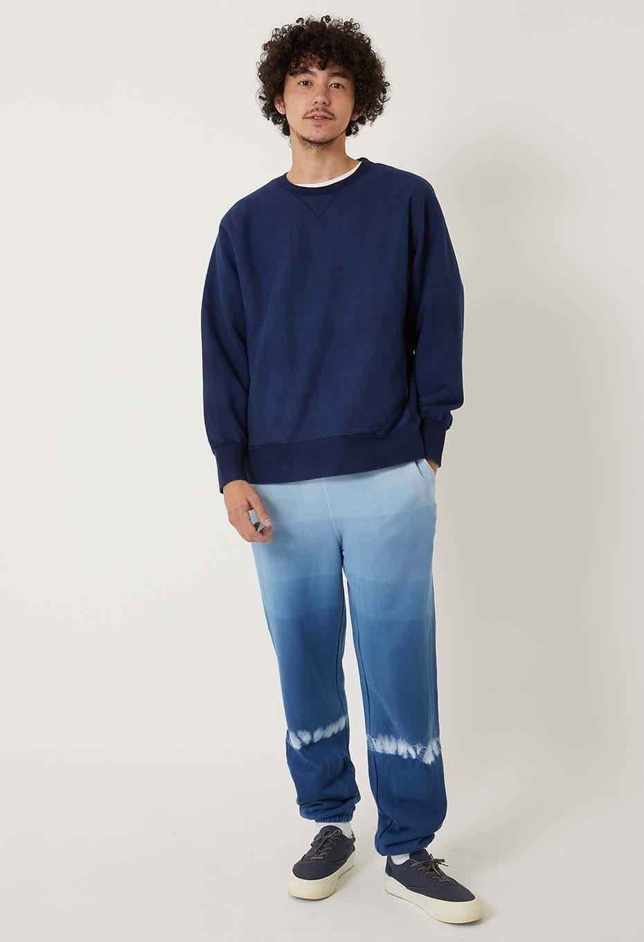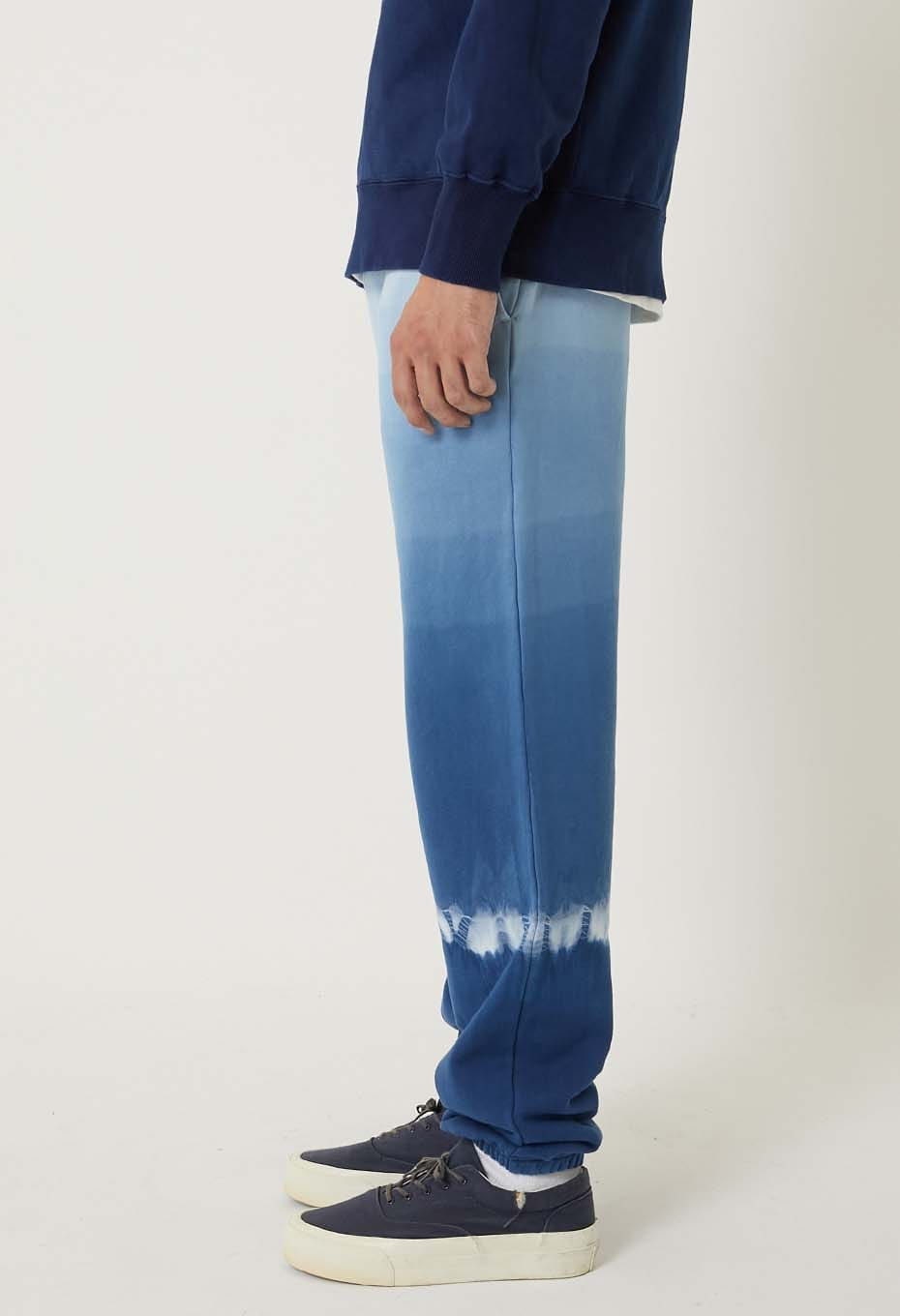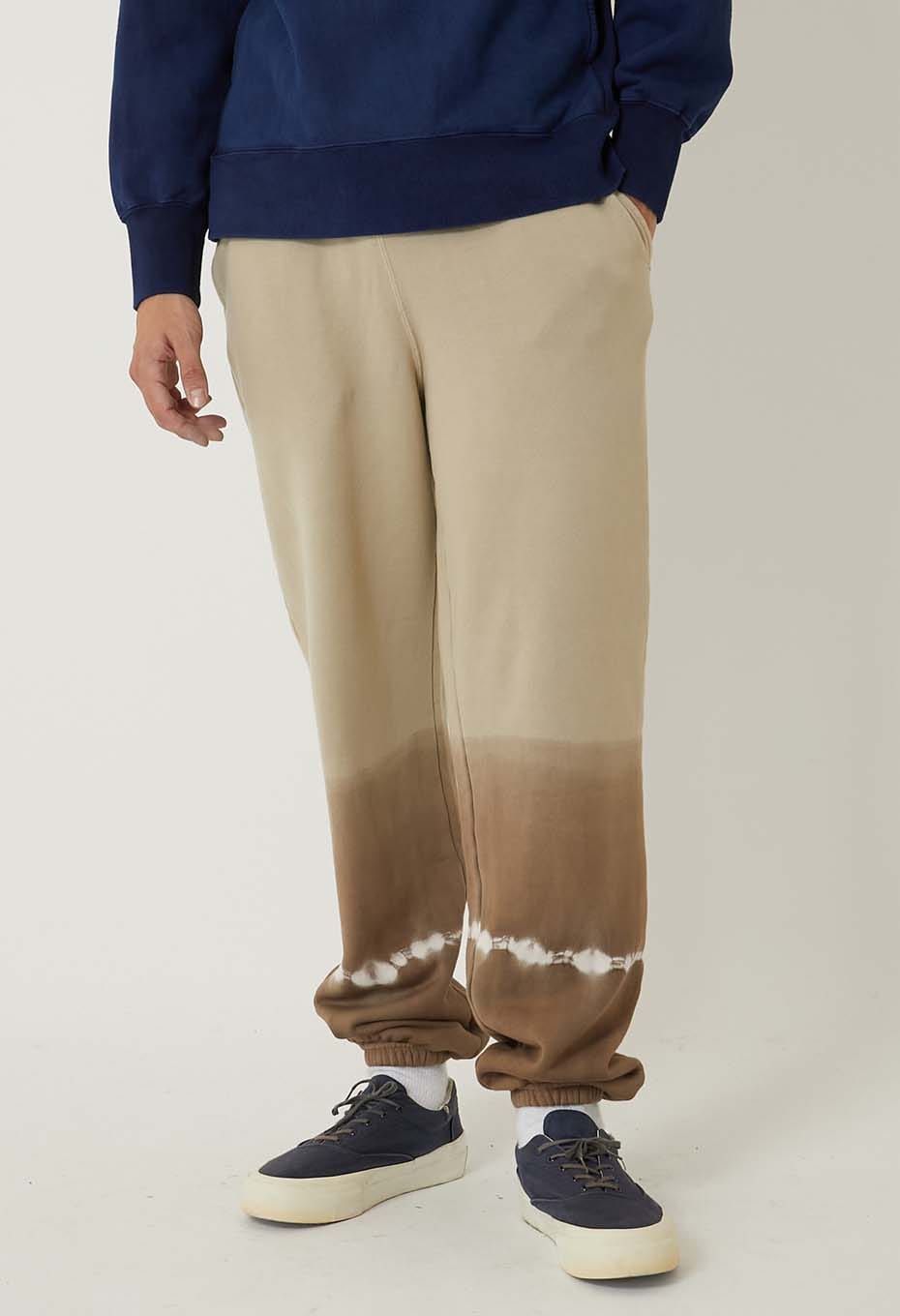 - カリフォルニア州サンホーキンバレーの雪解け水で育った非常に貴重な原綿を使用し、繊維にダメージがつかないよう手間暇をかけ、希少価値の高い特別な手法を用いて糸にしています。綿花そのものの柔らかさを楽しめる優しい風合いと美しい表面が魅力の素材です。職人によって一つ一つ手作業で施されている絞りとグラデーションカラーで黄昏時の空模様を表現しました。柔らかな素材を活かしたシンプルでやや裾にボリュームを持たせたシルエットです。裾はゴム仕様で靴の合わせによっておしゃれ感がアップ。パンツの細長い形にグラデーションの幅がきれいに表現されています。