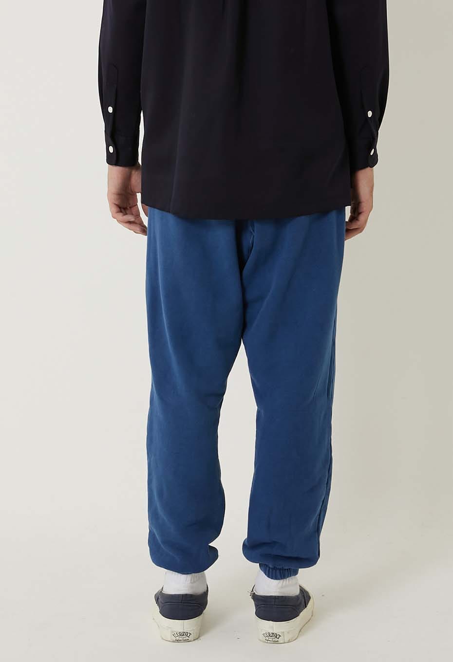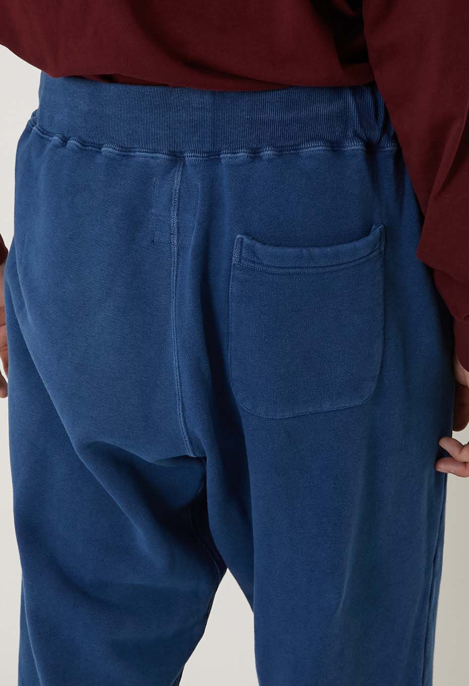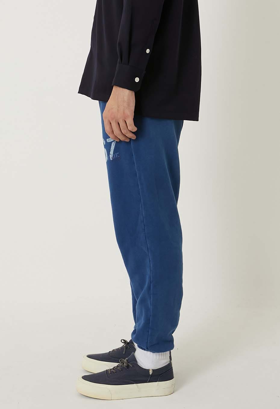 - ミリタリーのトレーニングウェアをイメージしたスウェットパンツです。程よい厚みと弾力のあるオリジナルスウェット生地をインディゴで染め、使い込まれたようなイメージでさらに加工を加え味わいを出しています。同素材のトップスとのセットアップもおすすめです。さりげないオリジナルステンシルプリントがポイントです。