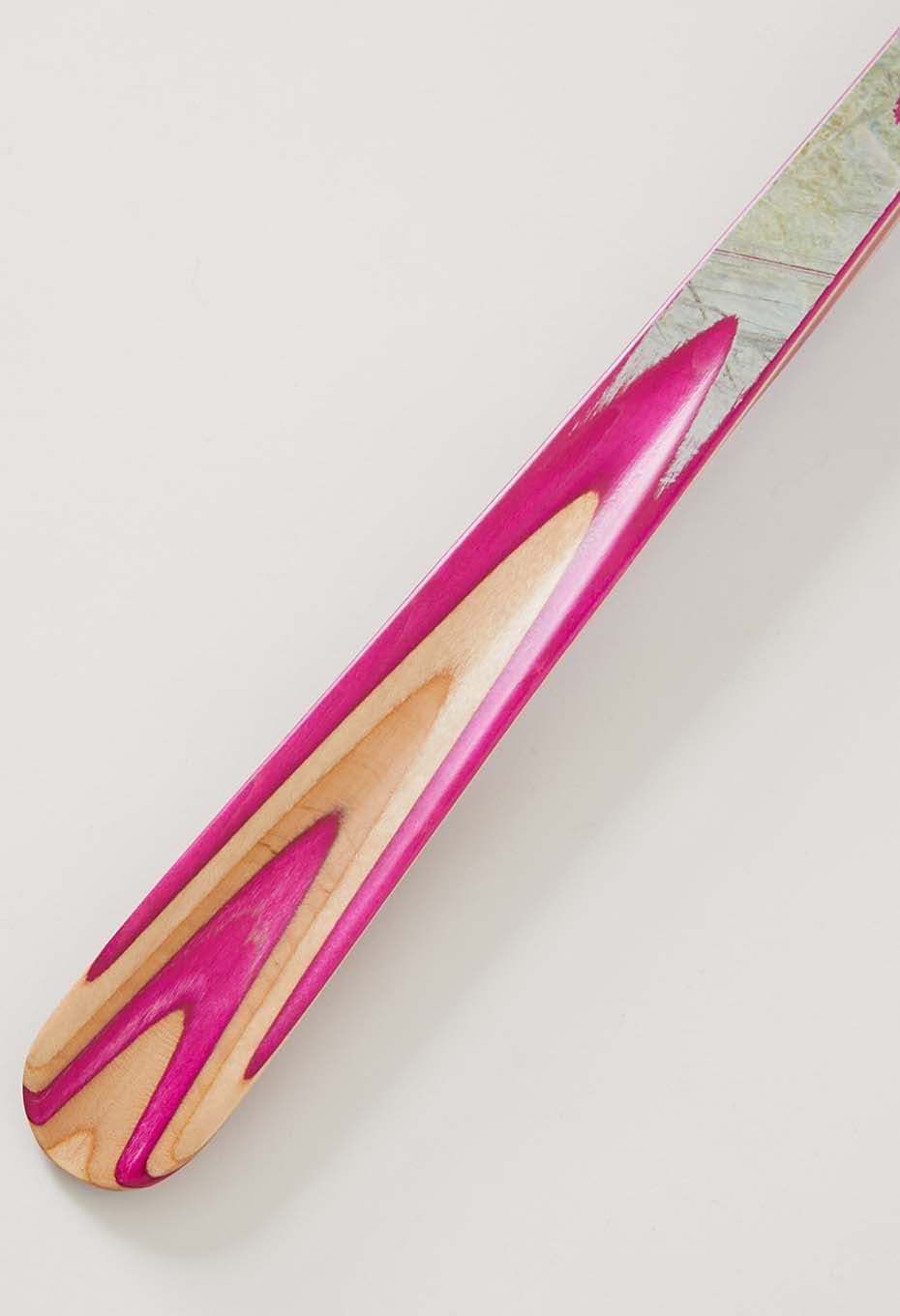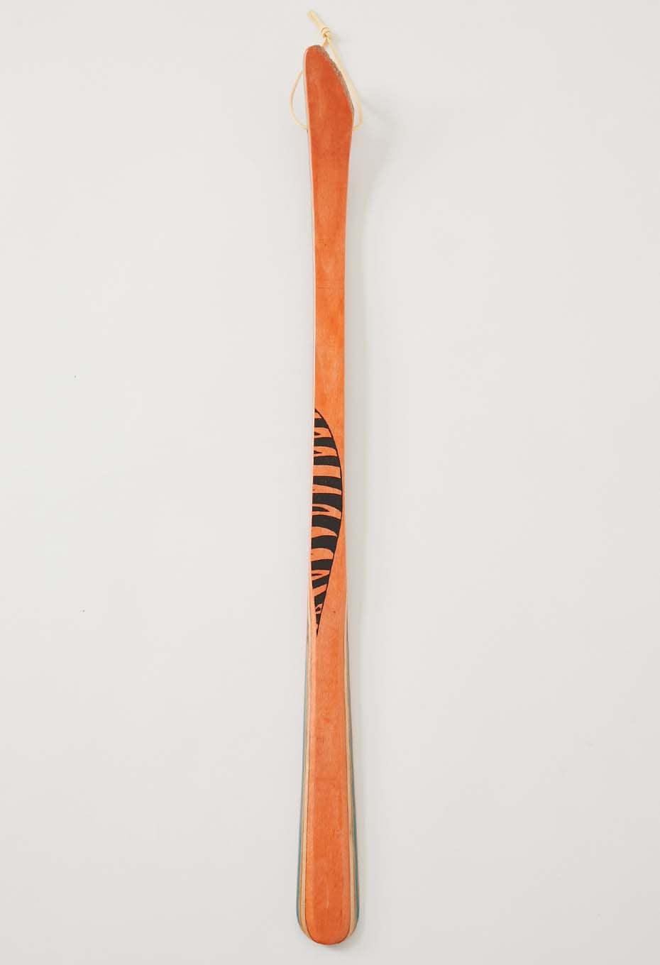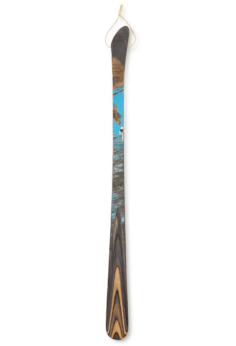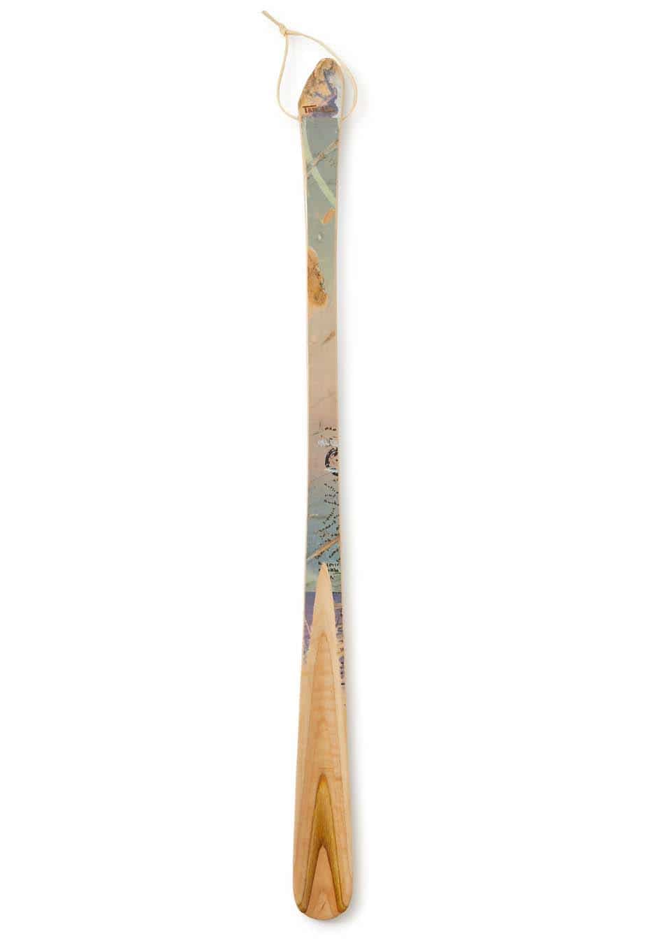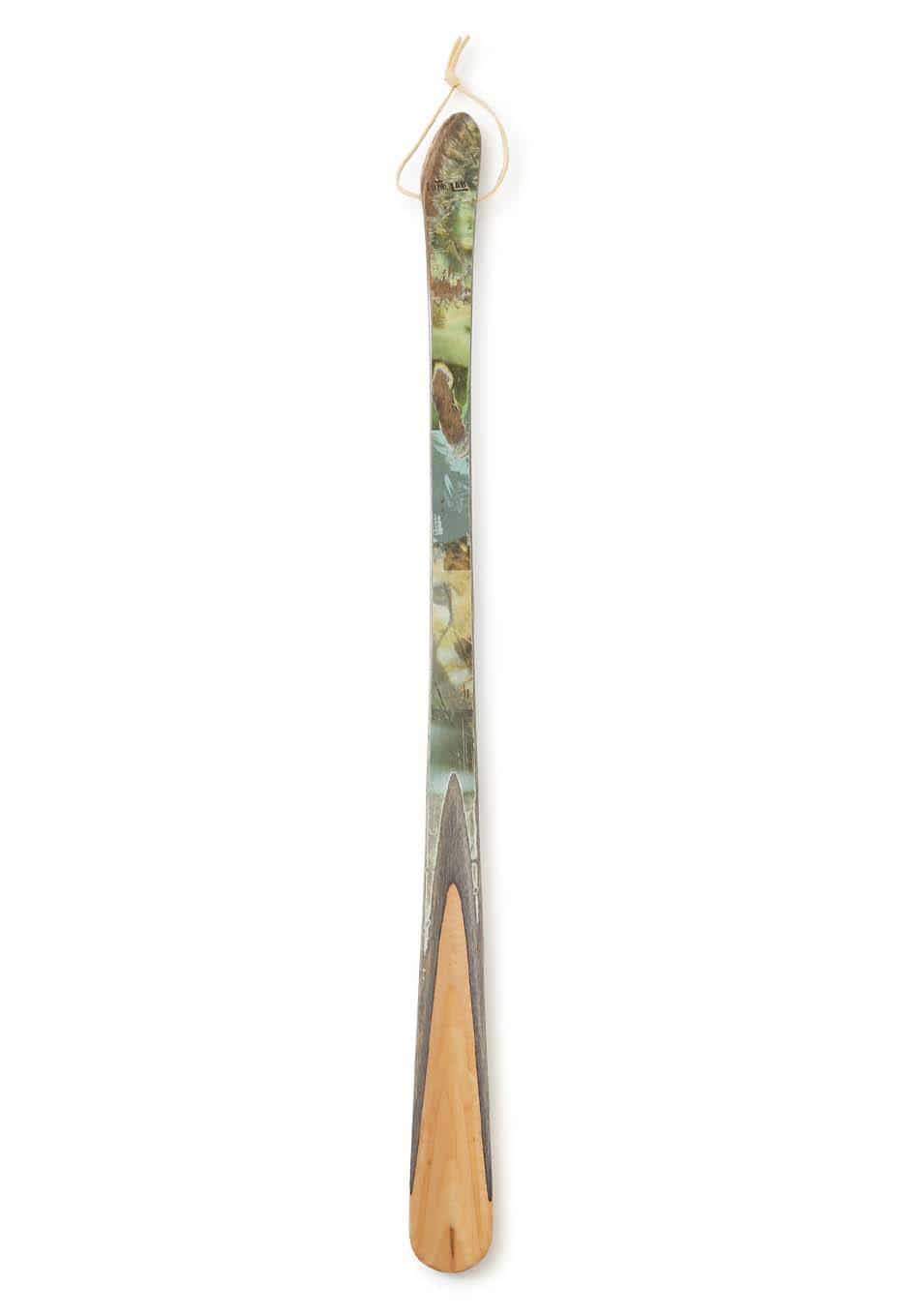 スケートボードの板から作られている今までにない新しい靴べらは、板に描かれたグラフィックやスケーターが付けた滑り傷を意識し、一本一本削り出しているためそれぞれ異なる見た目を持っています。