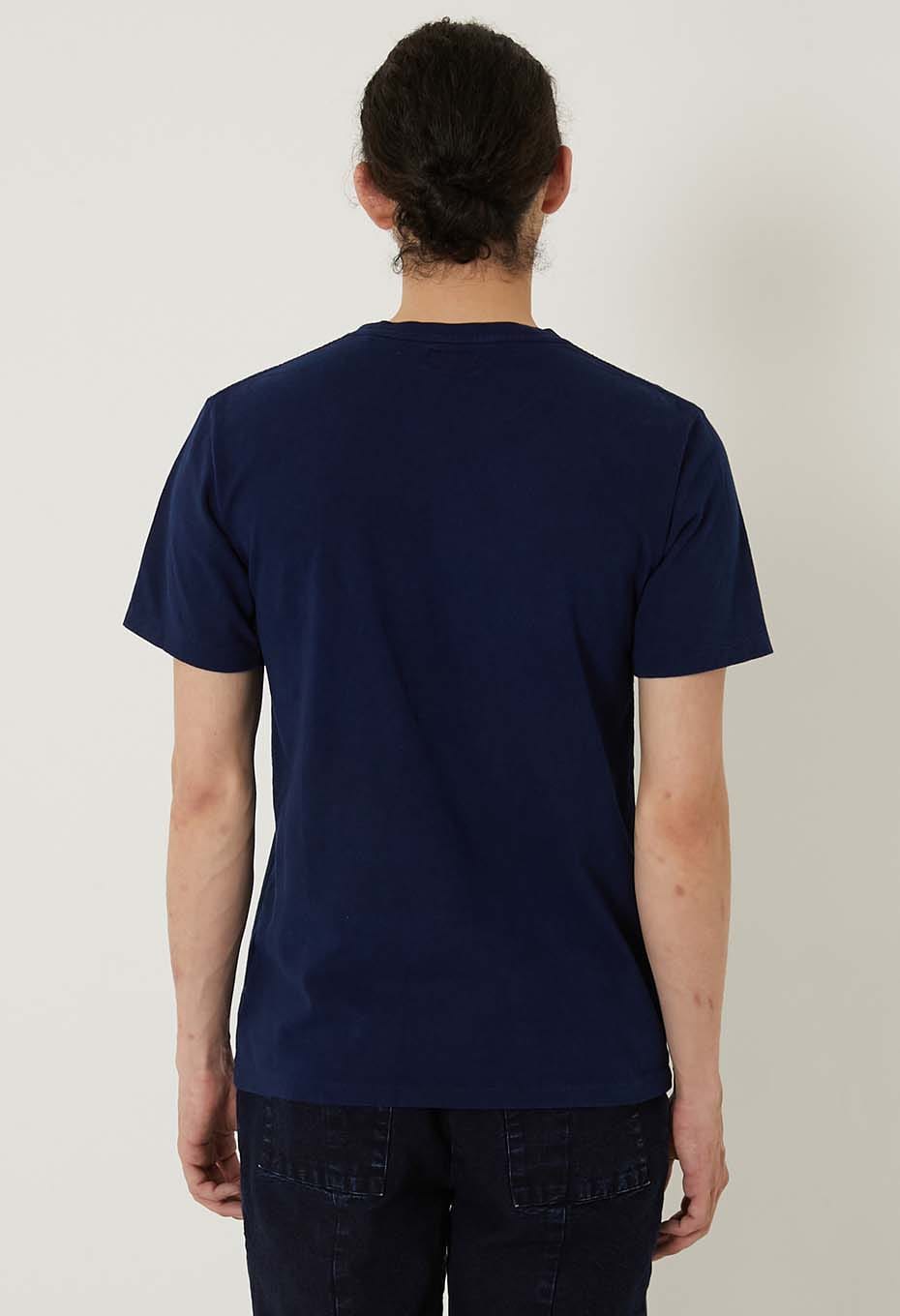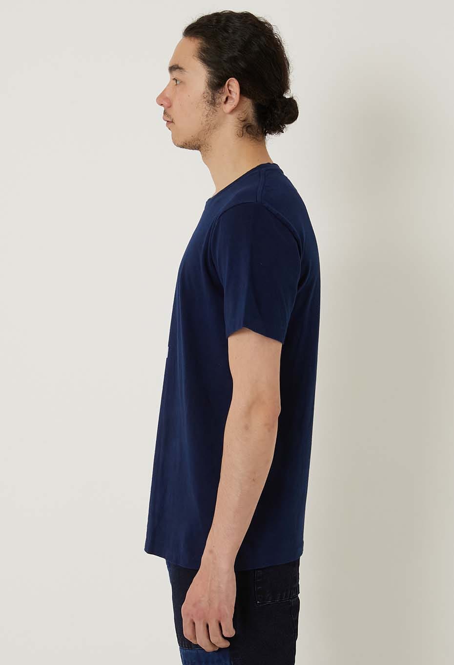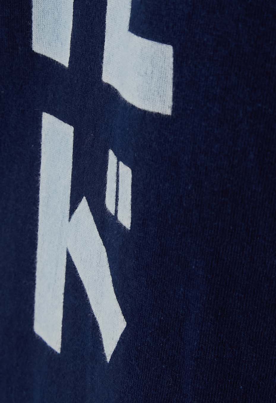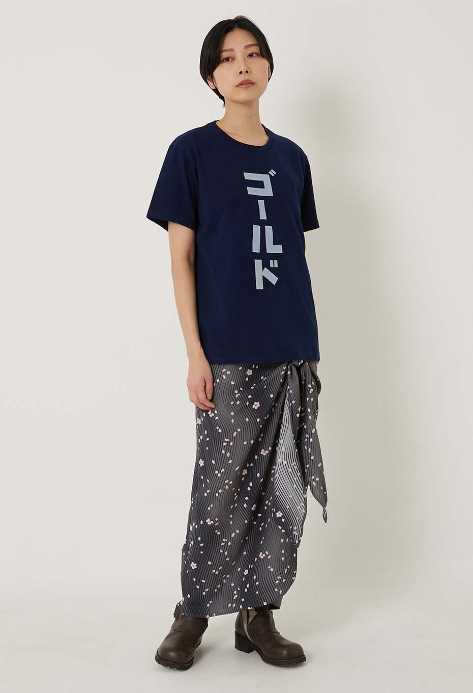 - インパクトのあるカタカナ文字を使ったインディゴ抜染Tシャツです。どこか懐かしさも感じる書体の直線がユニークです。