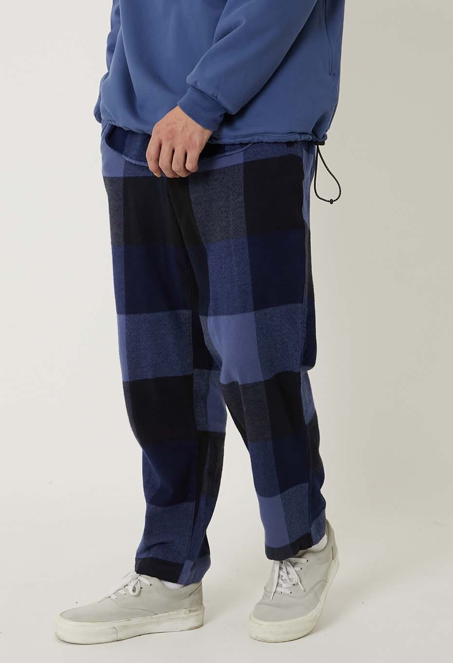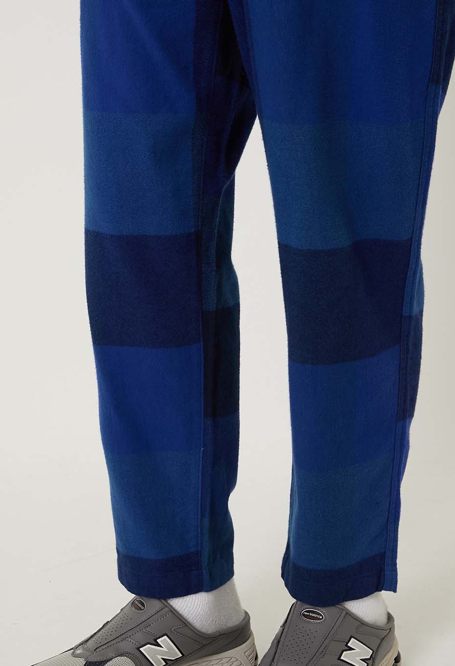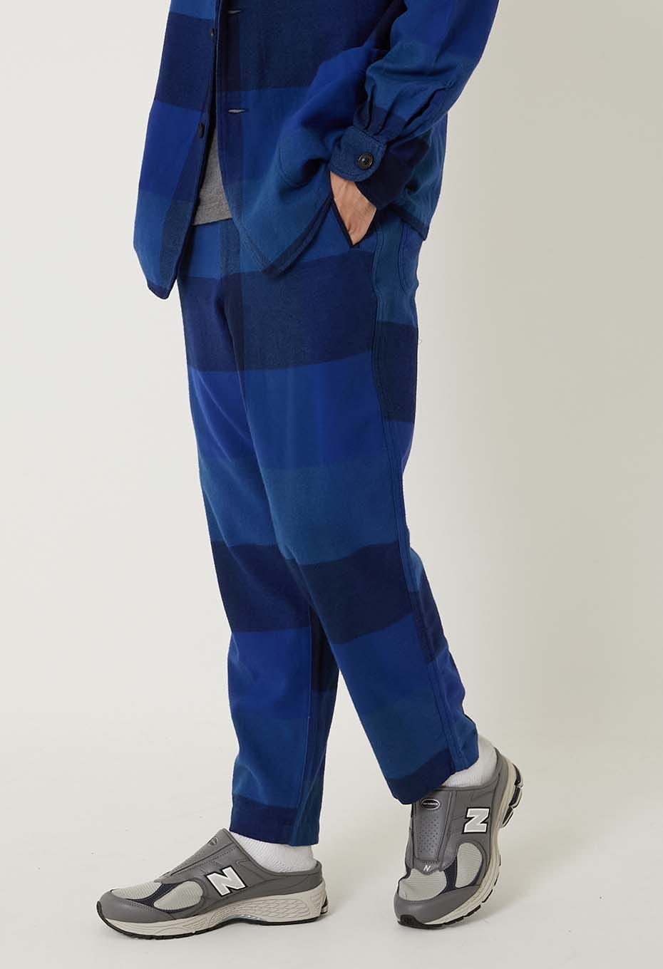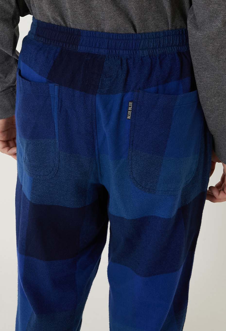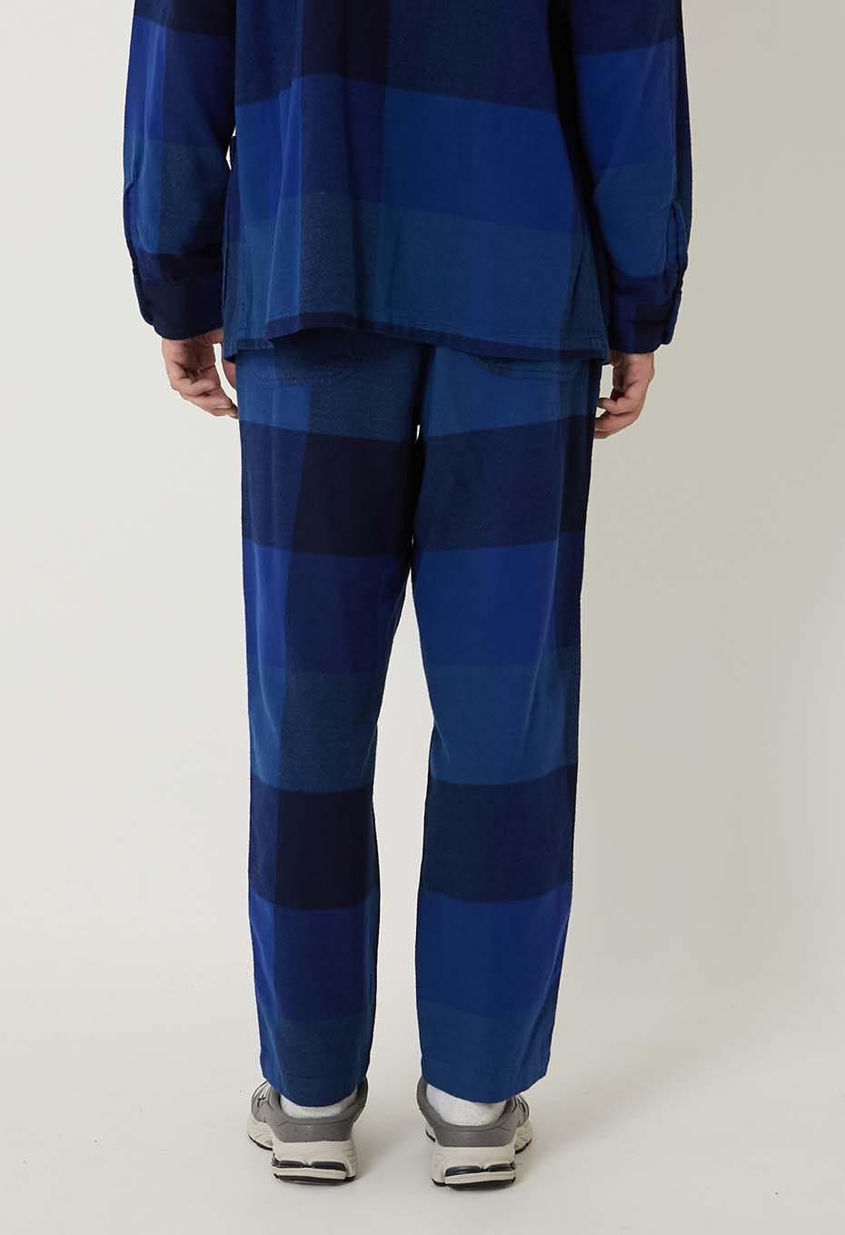 ブラッシュド インディゴ ブロックチェック ストリングパンツ