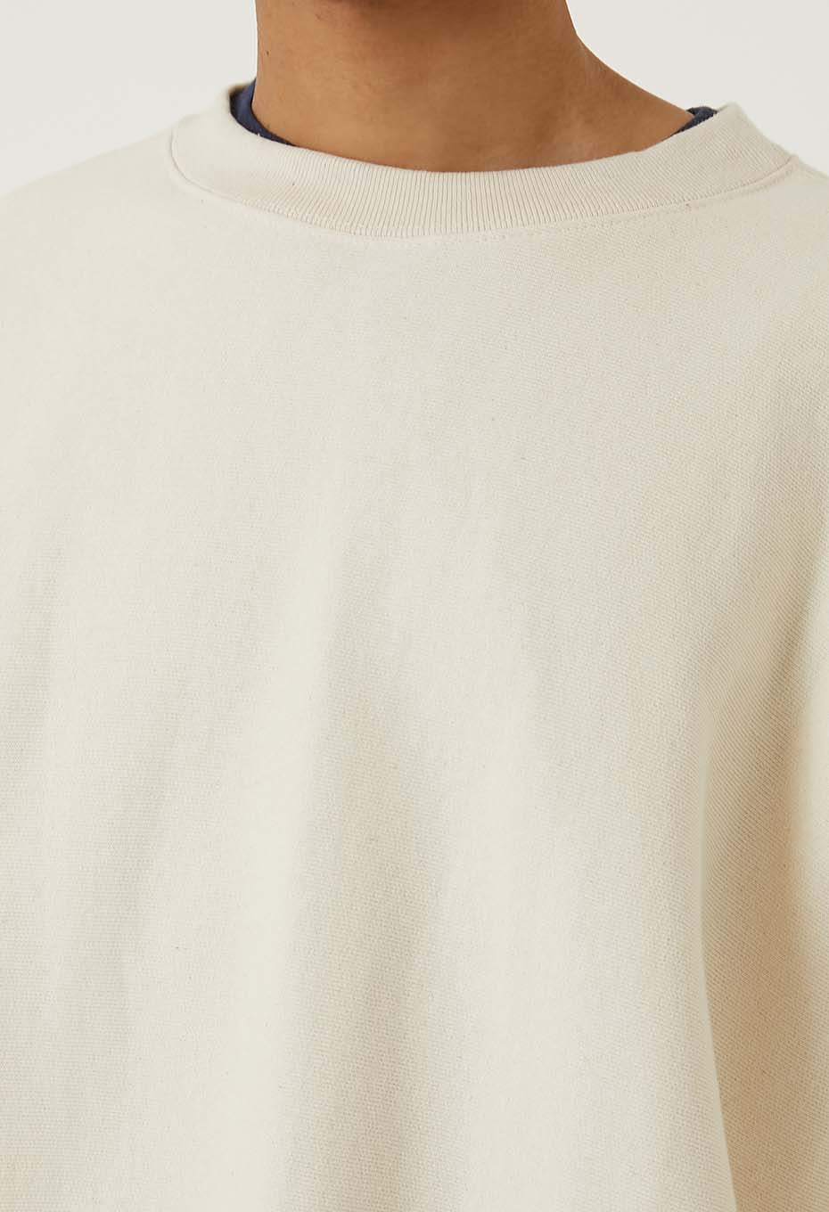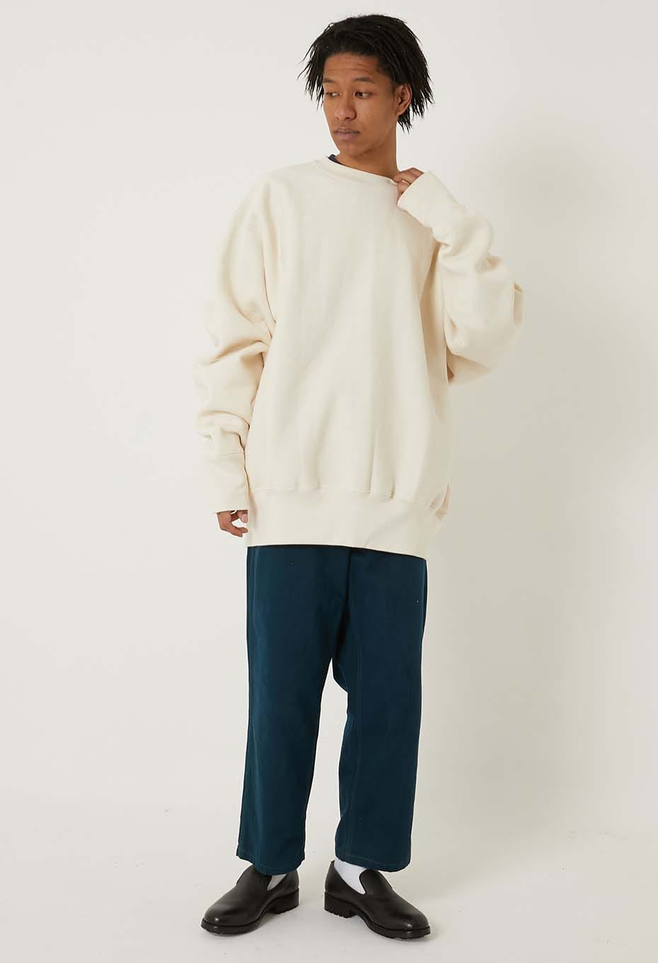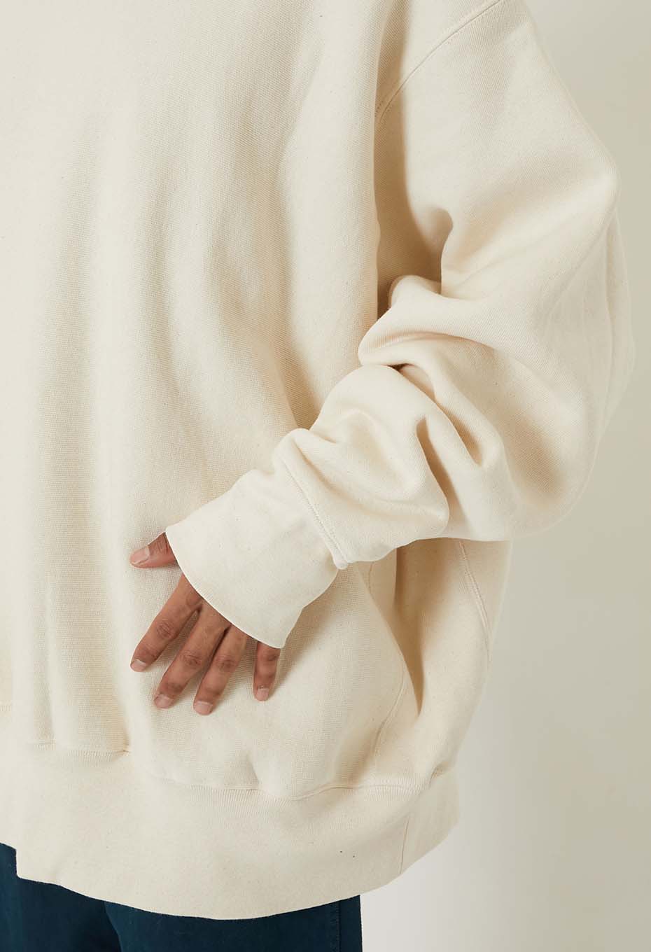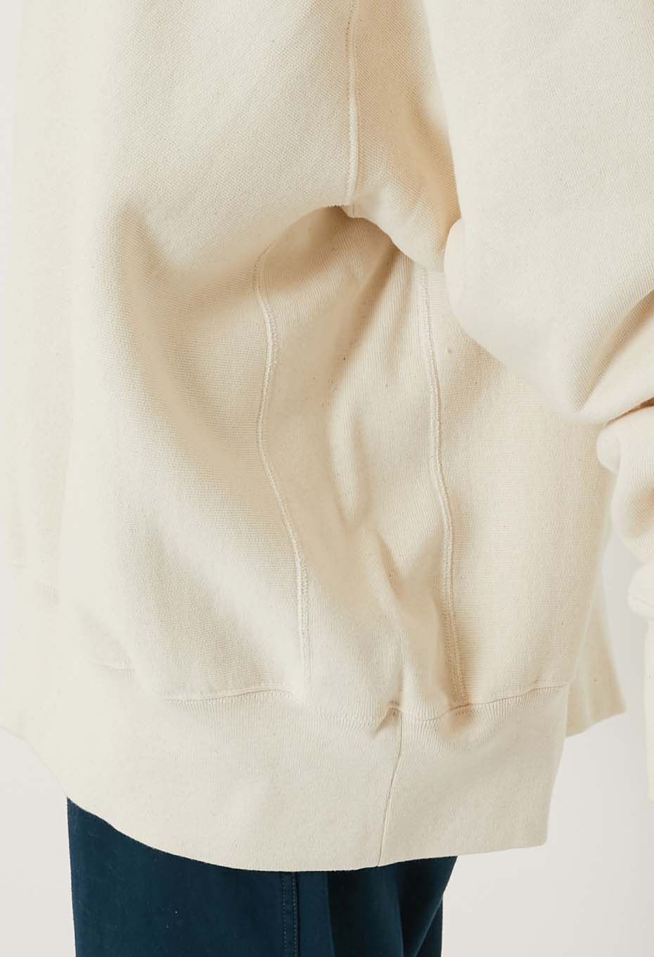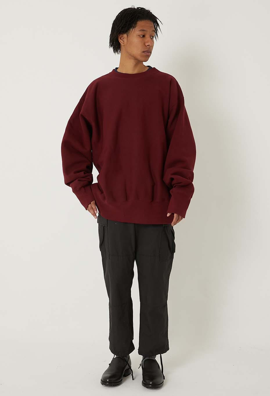 12ozという厚地のスウェット生地を使った「クロスニット」シリーズは、収縮しやすい生地の安定性を高めるための特殊な編み方を開発。 そのオリジナルの製法を用いり、アメリカにて生産をしているラインアップになります。