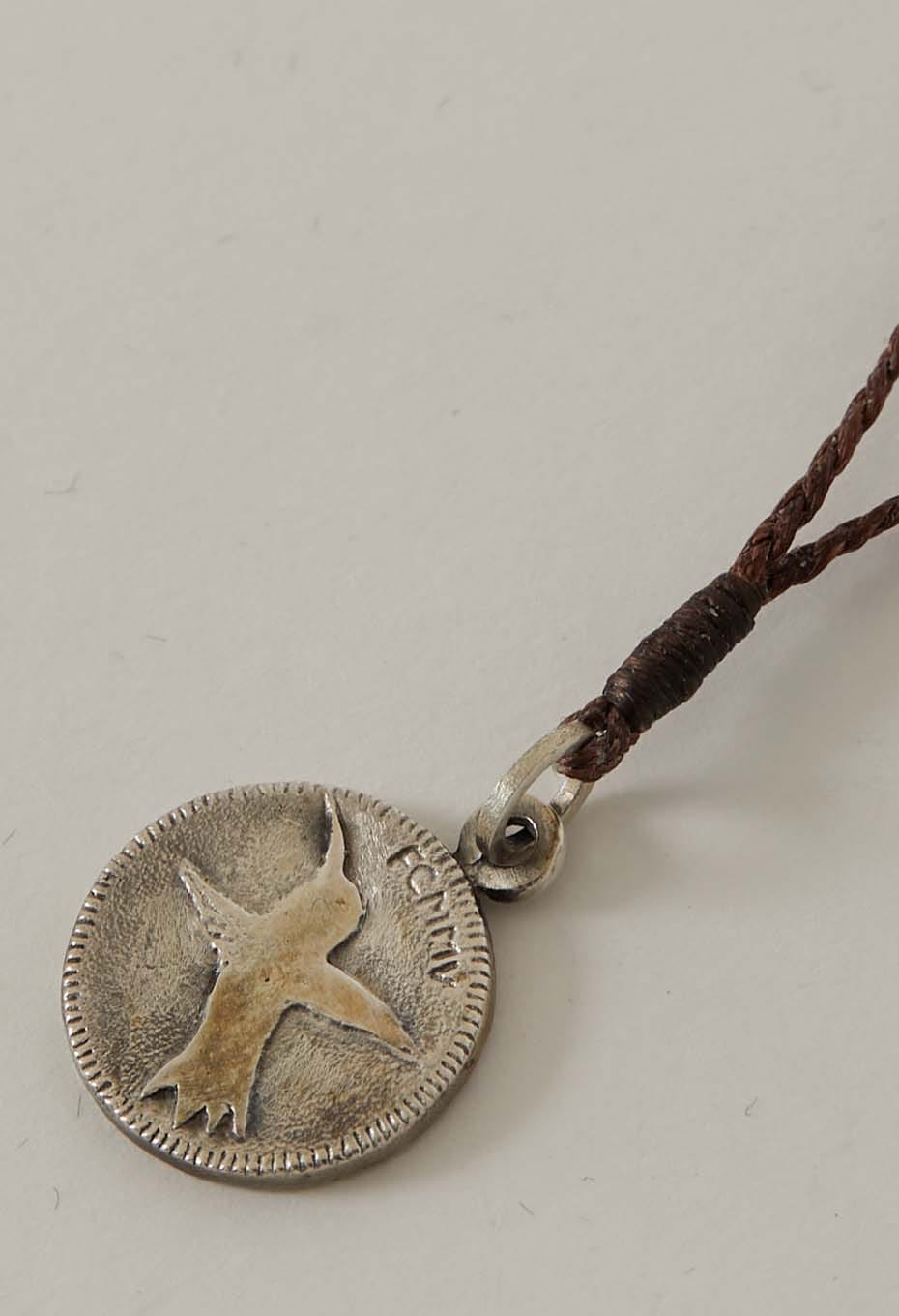 FREECITY FCANKL013 Small Coin Sparrow Silver Necklace 18inches Leather