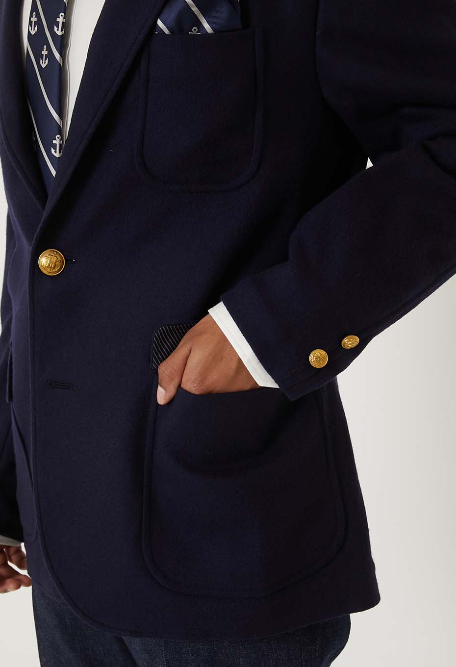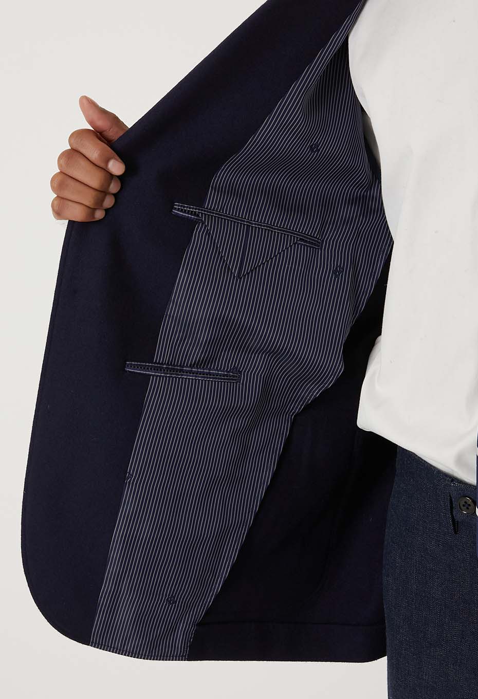 - ストレッチの効いたウールフラノ生地を使用した半裏仕立てのシンプルなブレザーです。