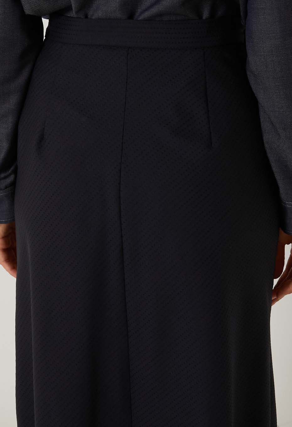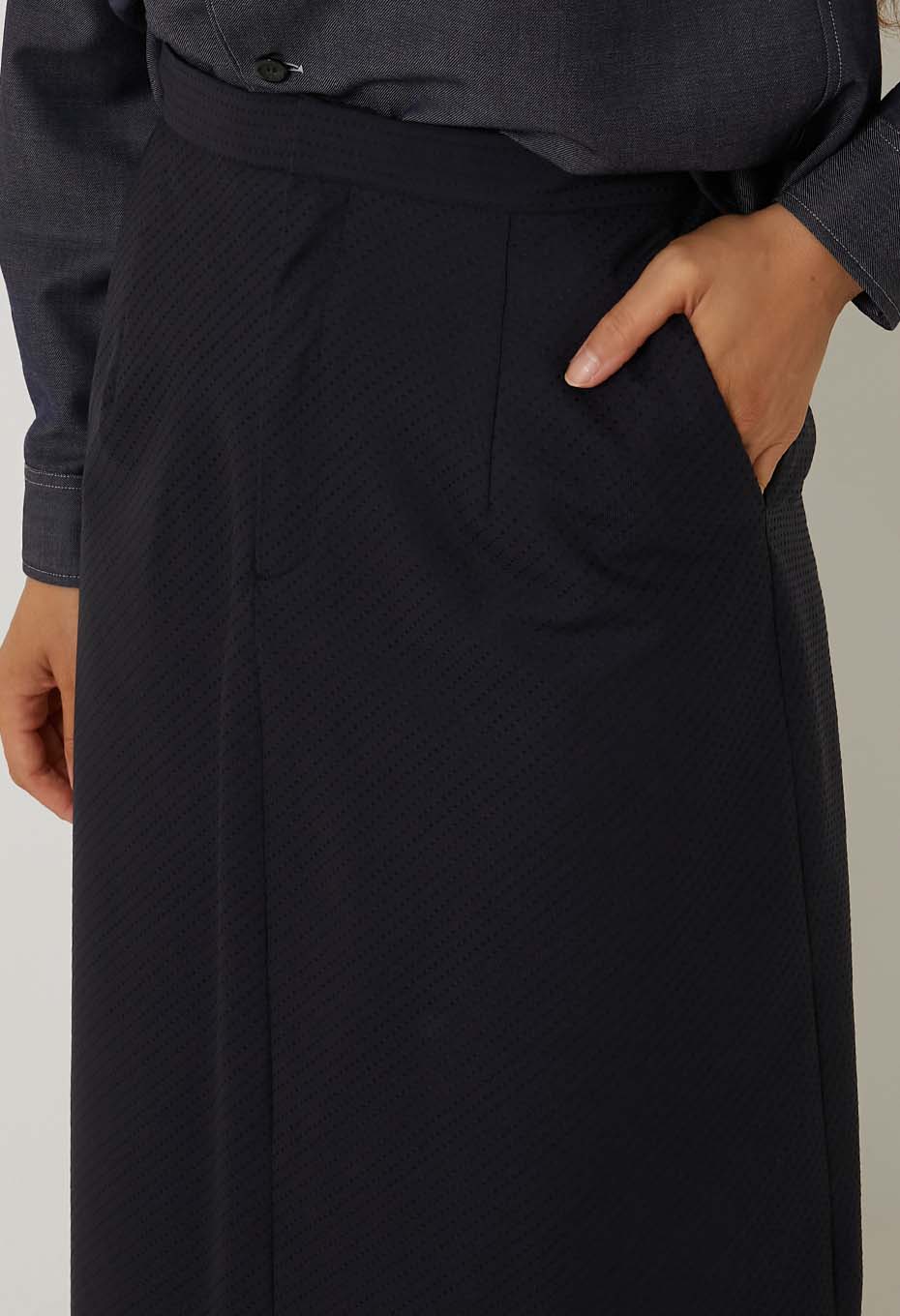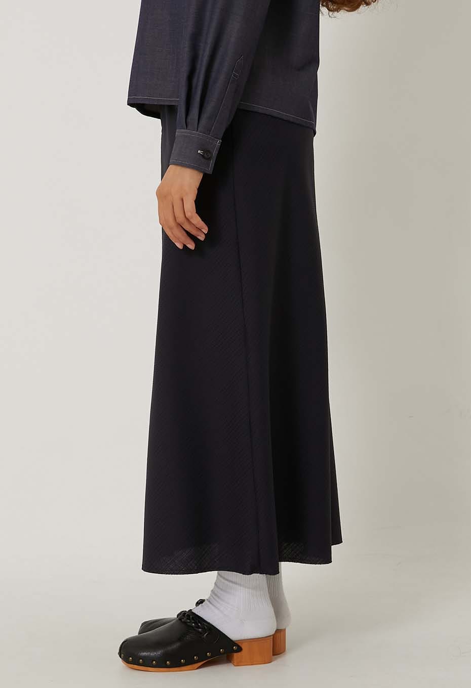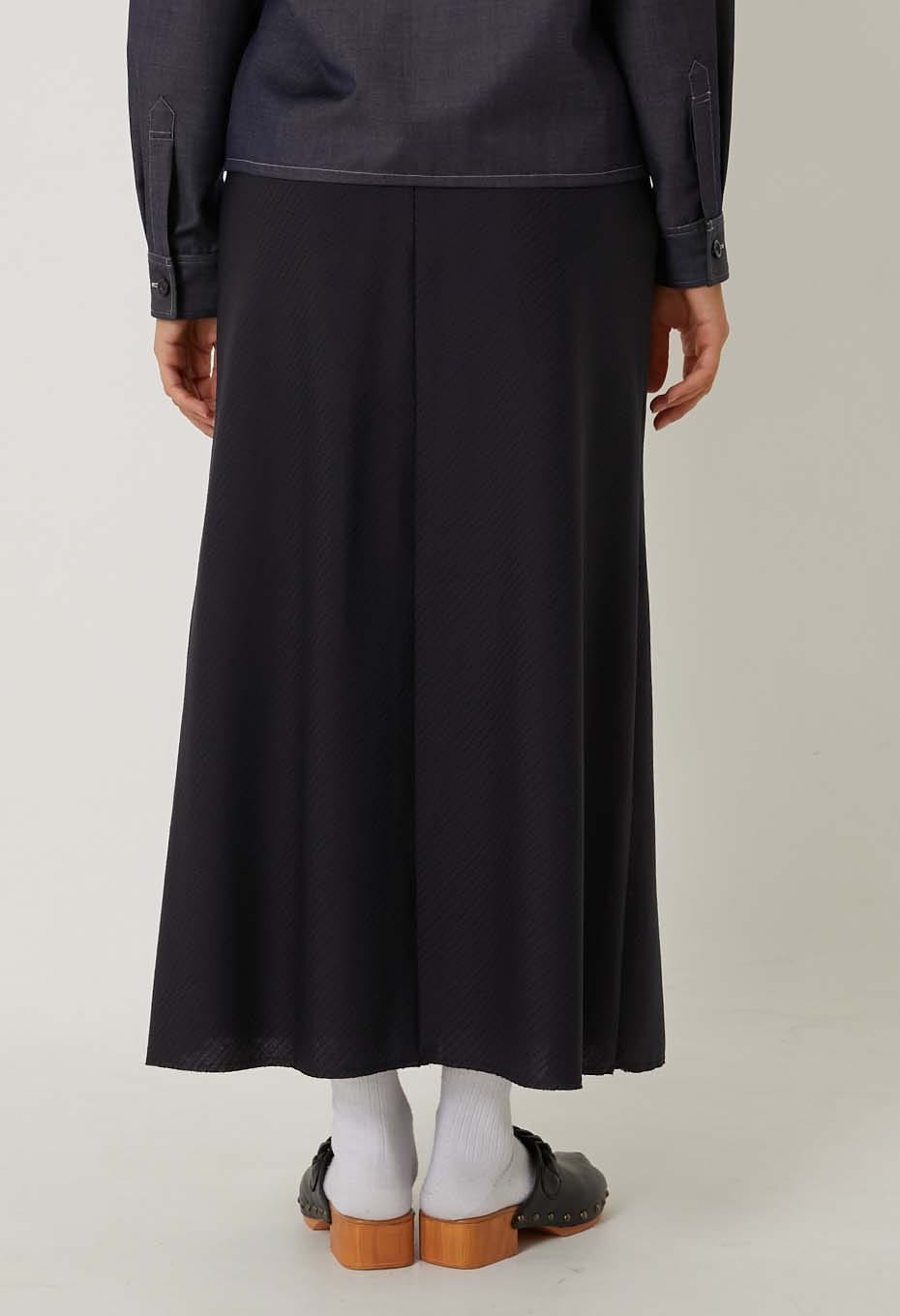 ドレープがきれいなロングスカート。シンプルなのでオンでもオフでも使えます。