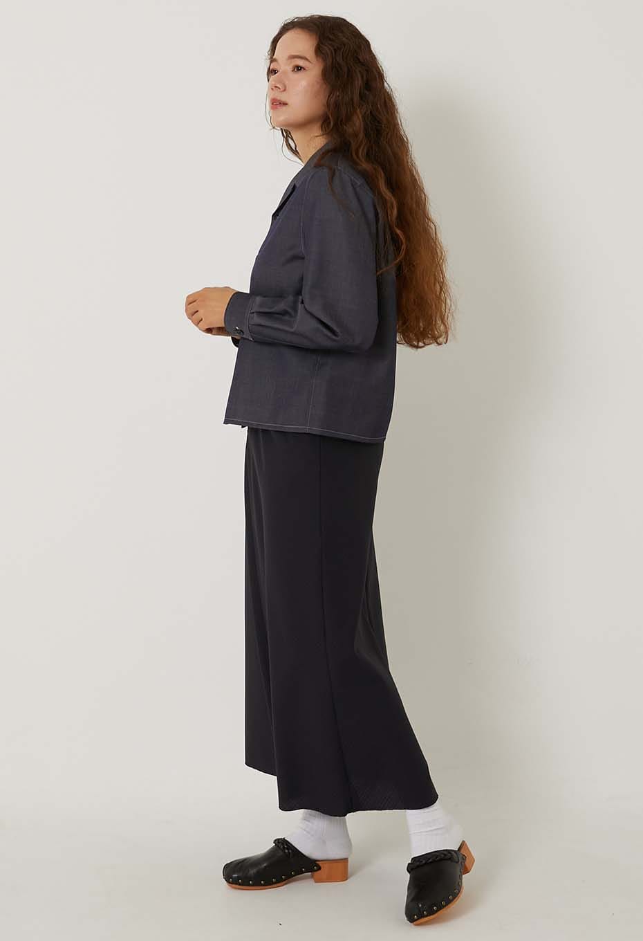 流れるようなドレープ性もありきれいなシルエットを生み出します。薄手でさらっとした肌触りですが柔らかさと膨らみ、ウール特有のウォーム感も兼ね備えた素材です。
