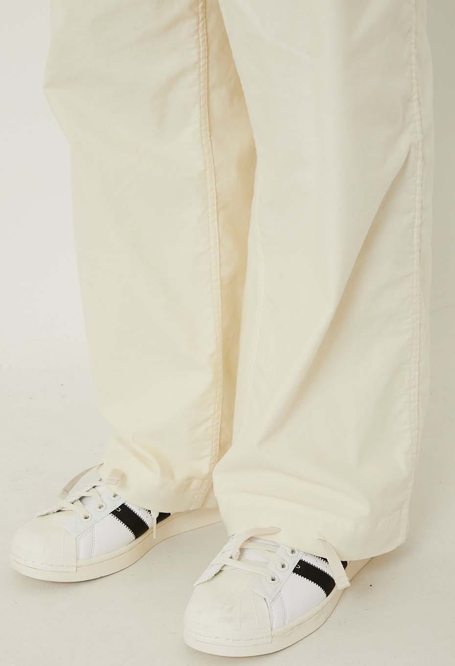 使いやすさを考えて、裾にドローコードをつけているので様々なコーディネートに対応できます。オリジナルのストレッチ生地を起毛させ、モールスキンのような風合いになっています。性別問わず幅広いスタイルにおすすめです。