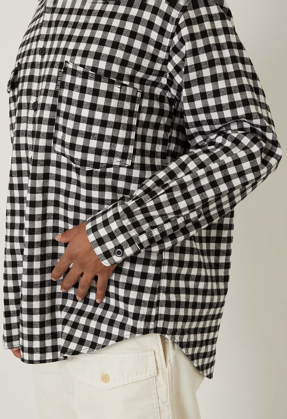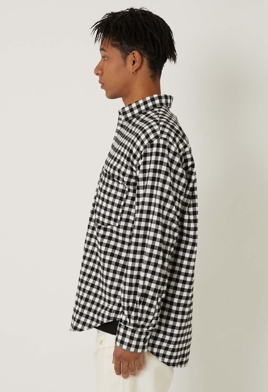 コットンフランネルチェック アシンメトリーフロントポケット ワークシャツ