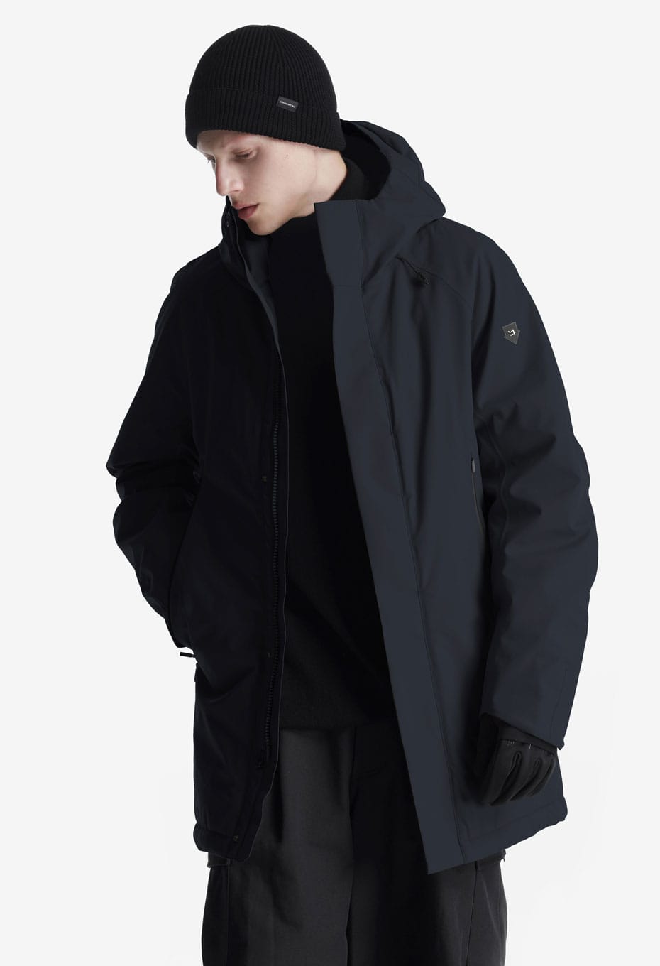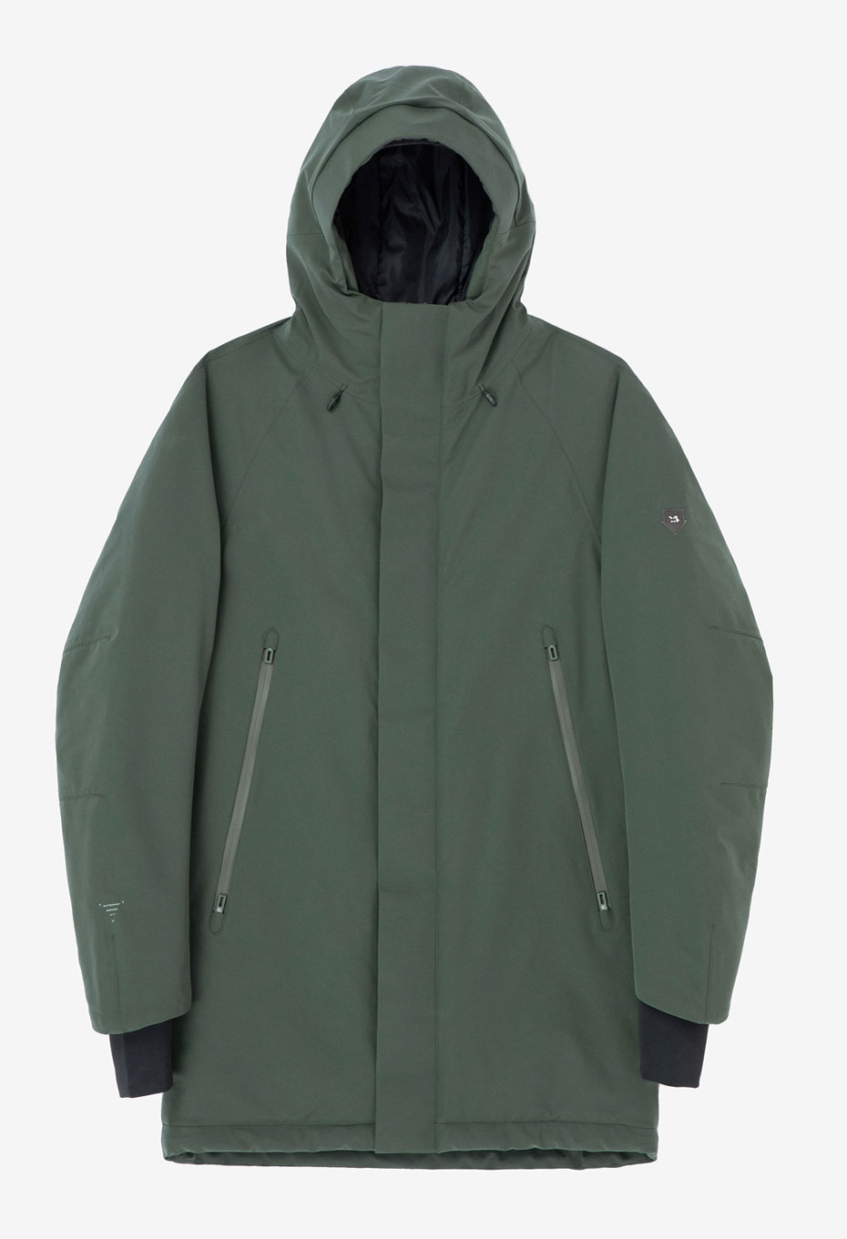 - 表地は15,000mmの防水指数のメンブレンでラミネート加工されたソフト リサイクル3レイヤ―生地を使用したウィンターパーカー。