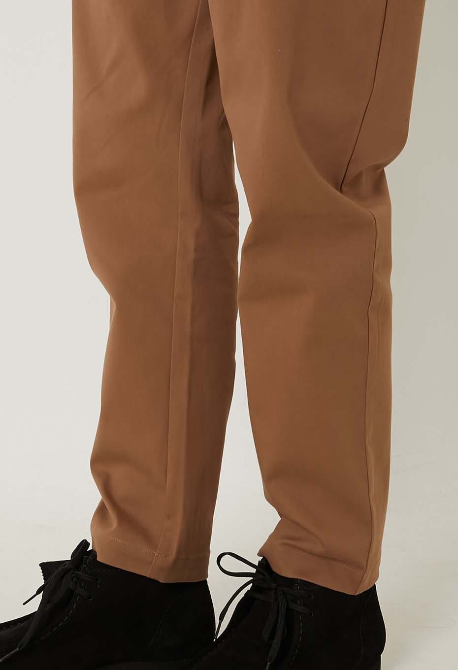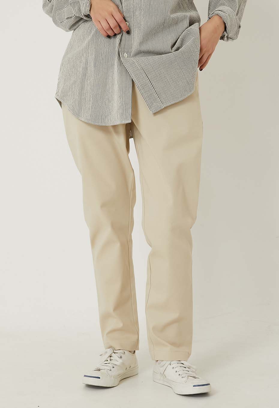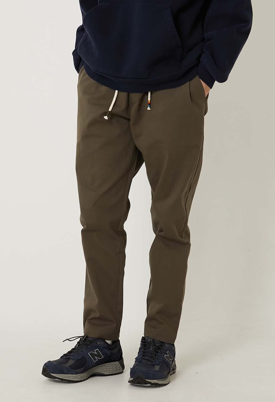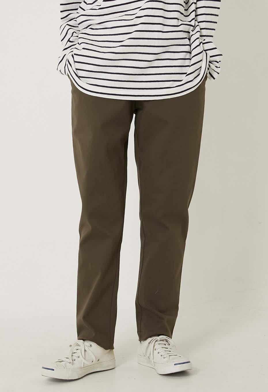 - ブランドを代表する定番のコフィンパンツ。程よくストレッチの効いたコットンギャバジン地はリラックスした穿き心地ながら、上品な光沢とすっきりとした膝下のテーパードシルエットが特徴の一本です。