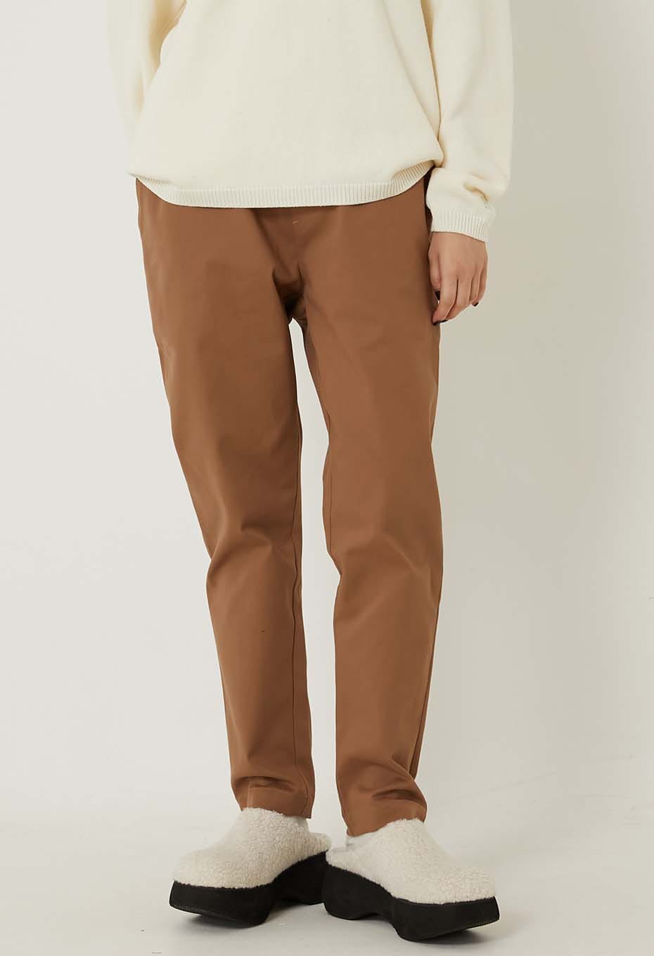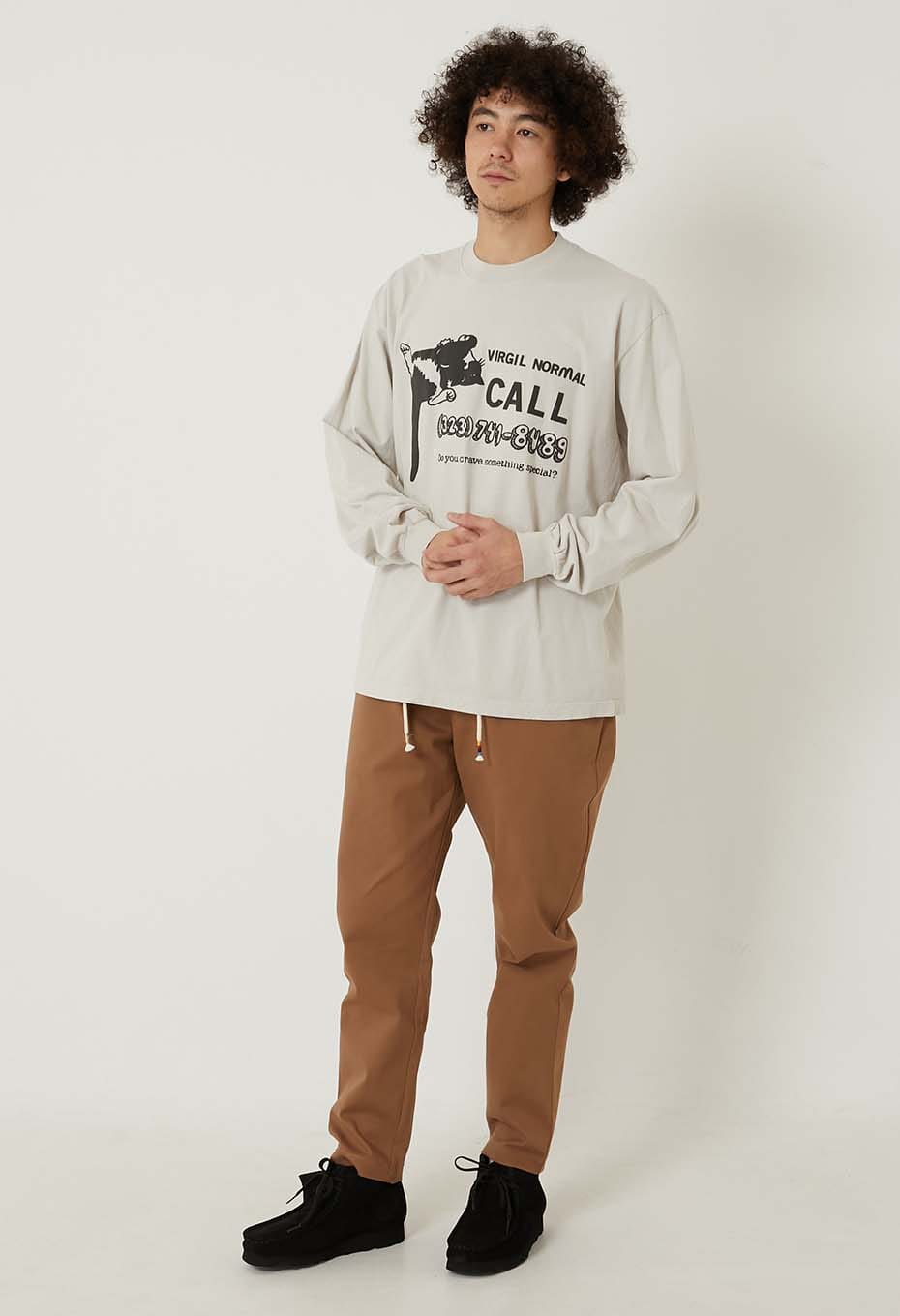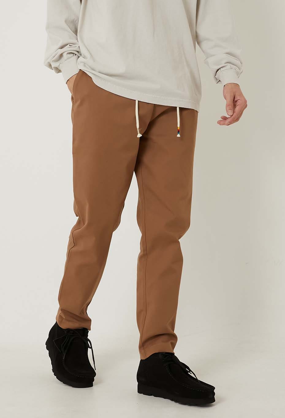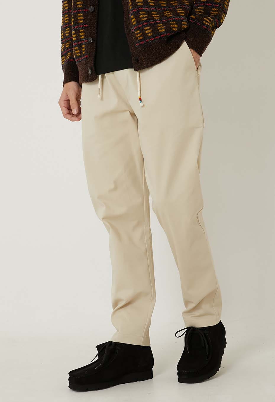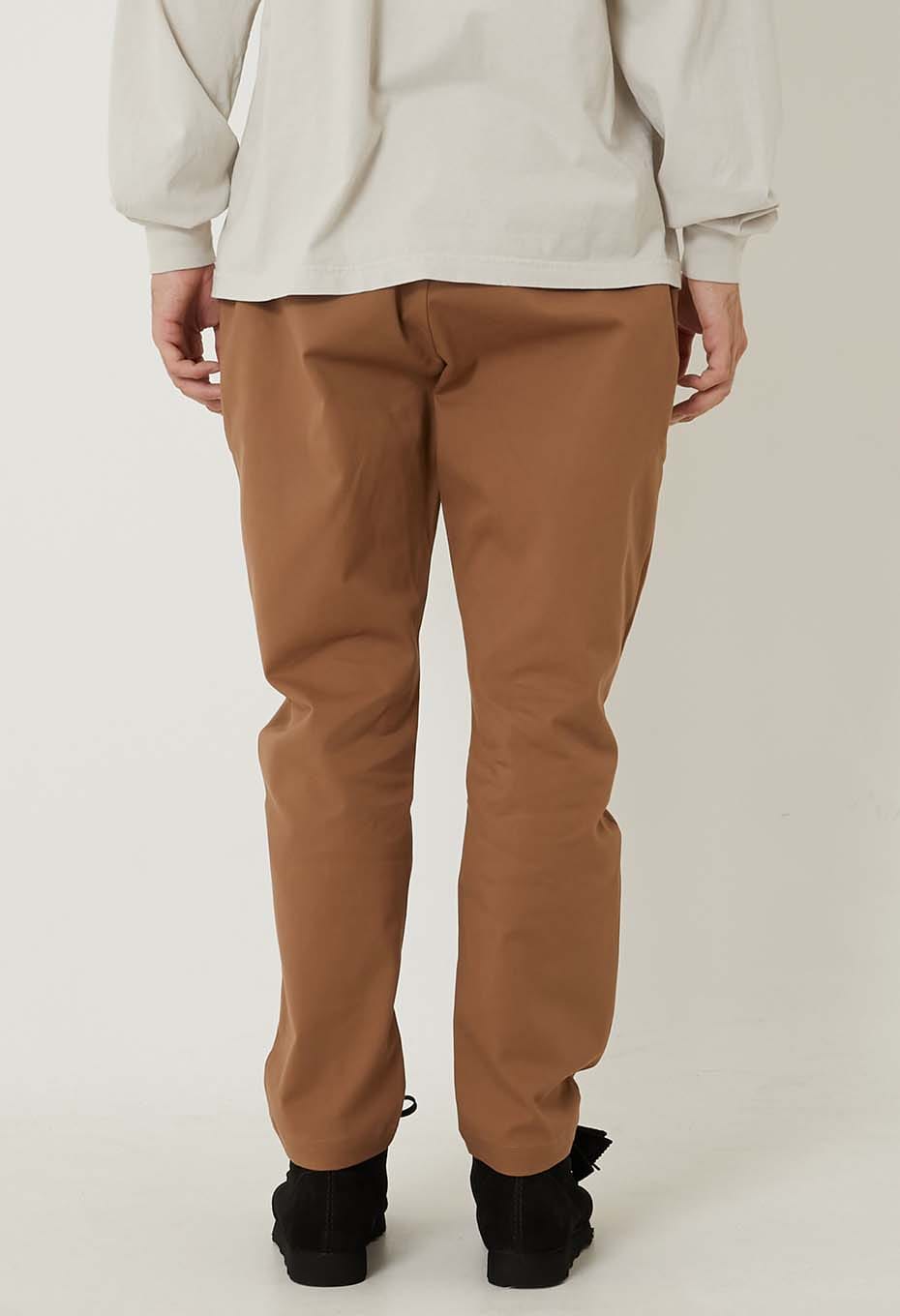- ブランドを代表する定番のコフィンパンツ。程よくストレッチの効いたコットンギャバジン地はリラックスした穿き心地ながら、上品な光沢とすっきりとした膝下のテーパードシルエットが特徴の一本です。