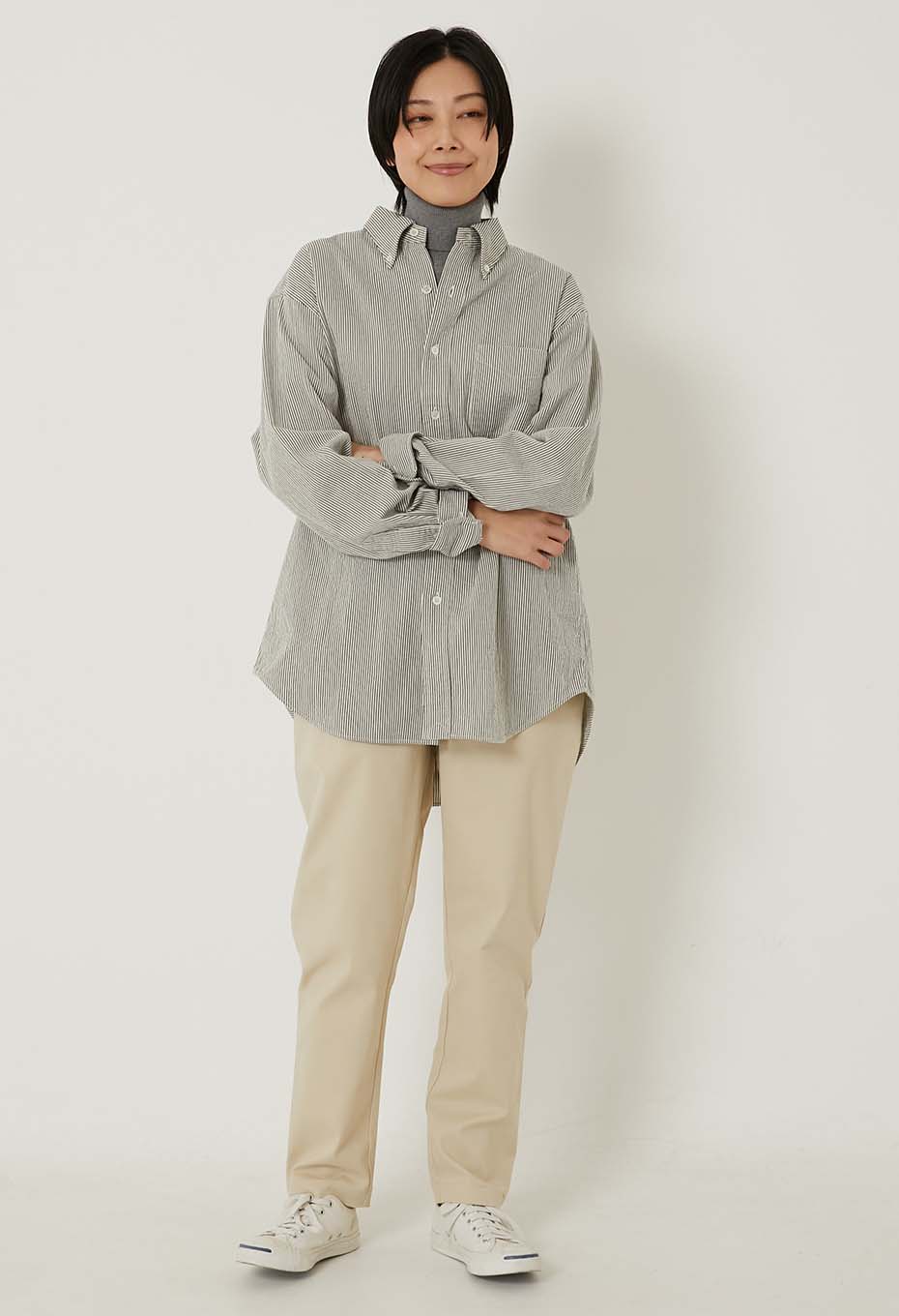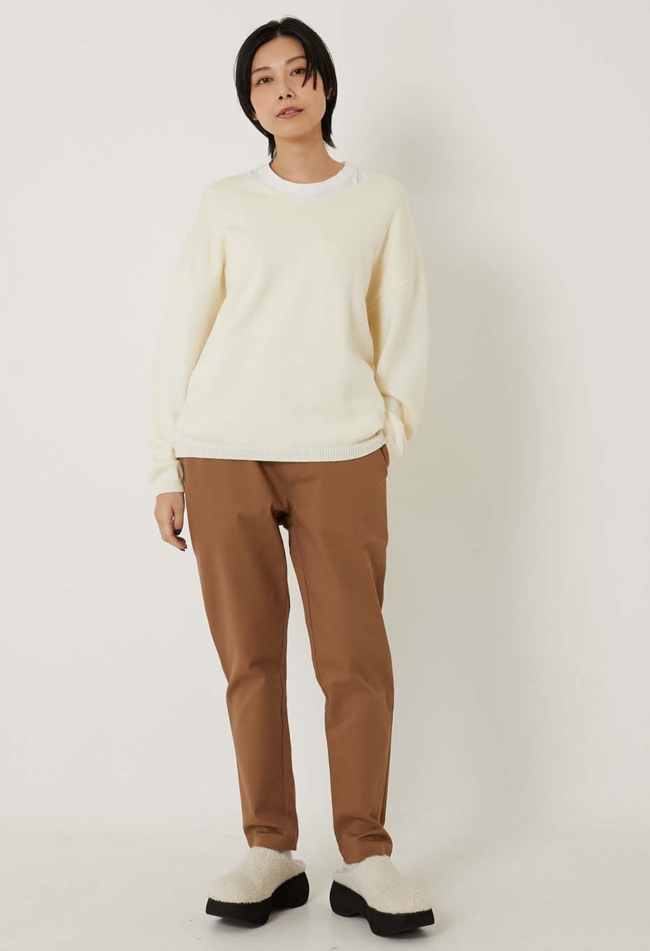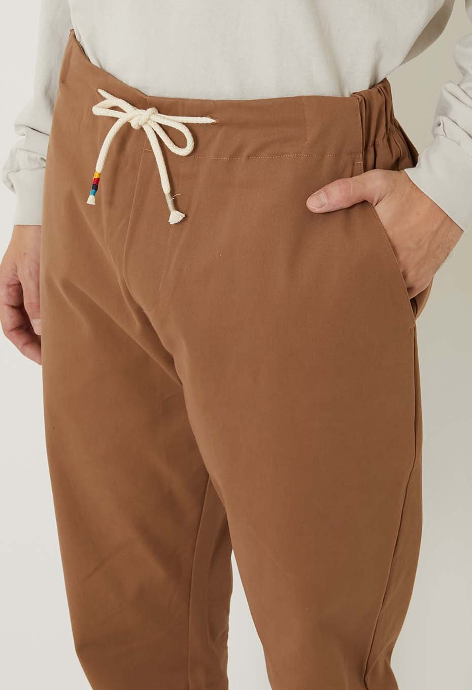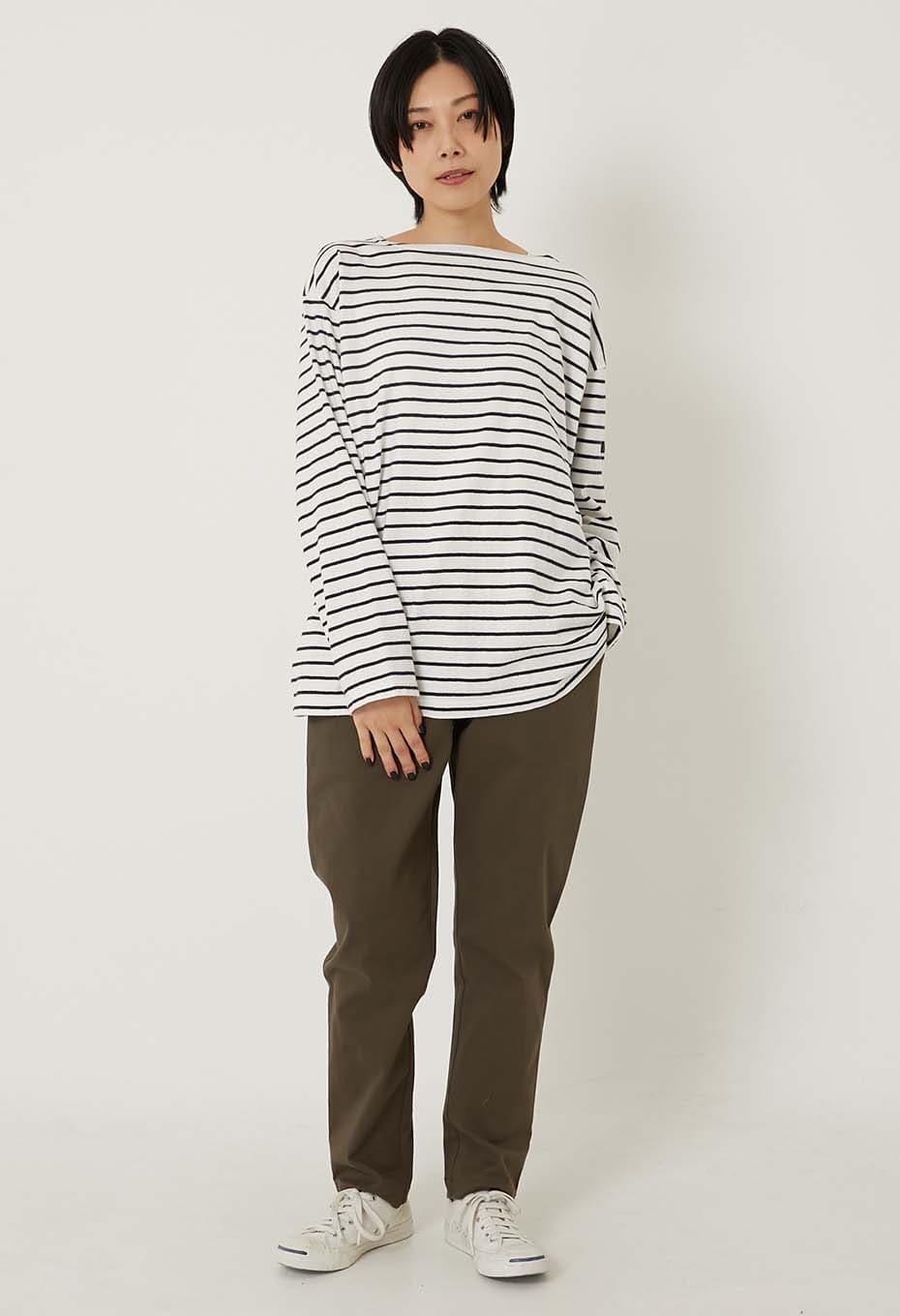 - ブランドを代表する定番のコフィンパンツ。程よくストレッチの効いたコットンギャバジン地はリラックスした穿き心地ながら、上品な光沢とすっきりとした膝下のテーパードシルエットが特徴の一本です。