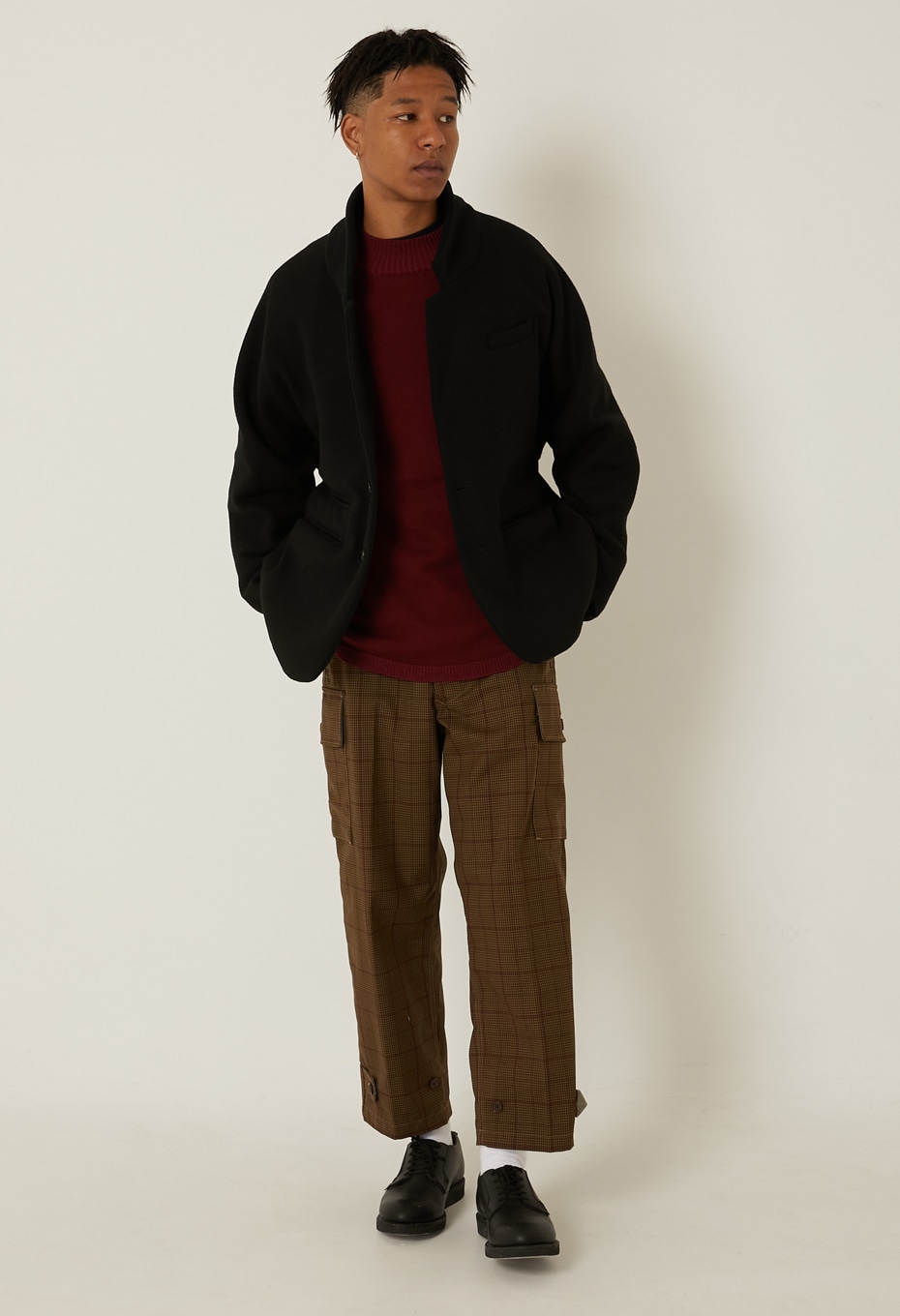 - ウール素材のフランネル生地を使ったドルマンスリーブのジャケット。日本の着物からインスパイアされたドルマンスリーブにより、肩から袖にかけて流れるようなシルエットが特徴です。ノッチは低めでカジュアルな印象のラペル。ウェルトは細幅で美しく仕上げられています。