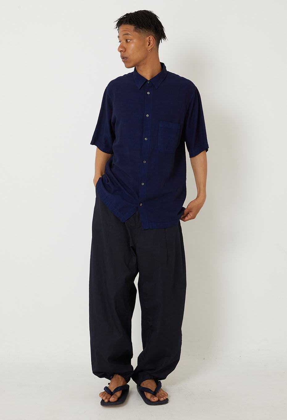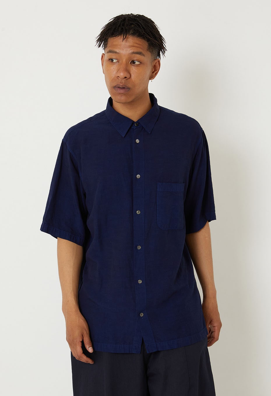 「本藍染め」を活かしたリラックス感のあるプレーンな半袖シャツ。