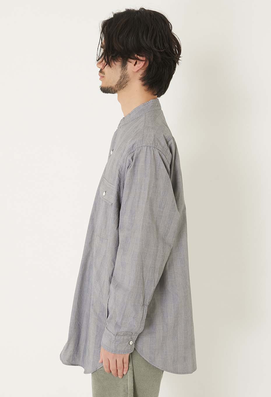 肌離れの良いコットン100%生地を使用した、ヴィンテージディテールのスタンドカラーシャツです。