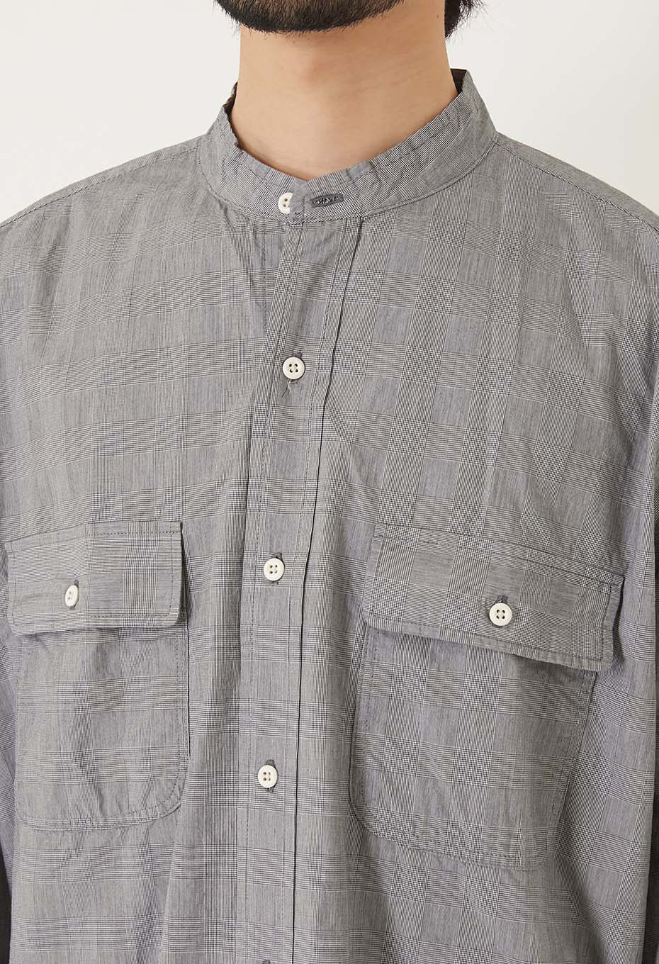 ミリタリーの士官用シャツのようなディテールを採用したスタンドカラーシャツ。1枚でも品のある雰囲気でご着用いただけます。