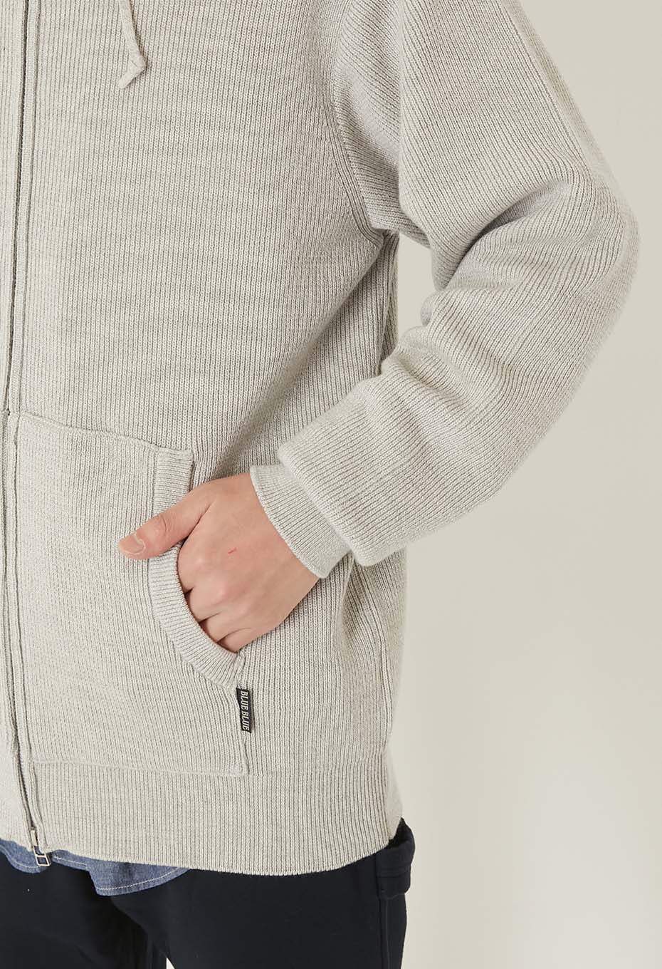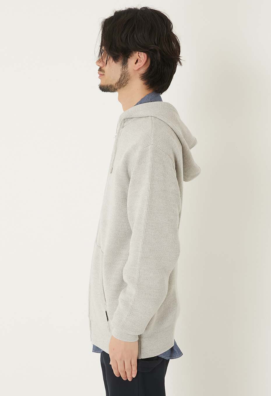 コットンウール素材が上品な、スウェットのようなニットパーカーです。