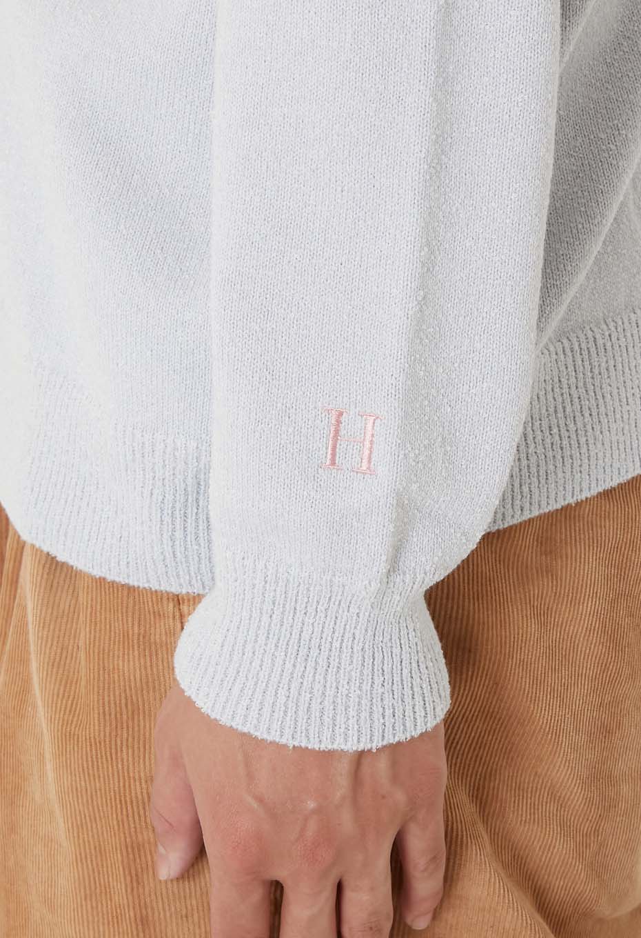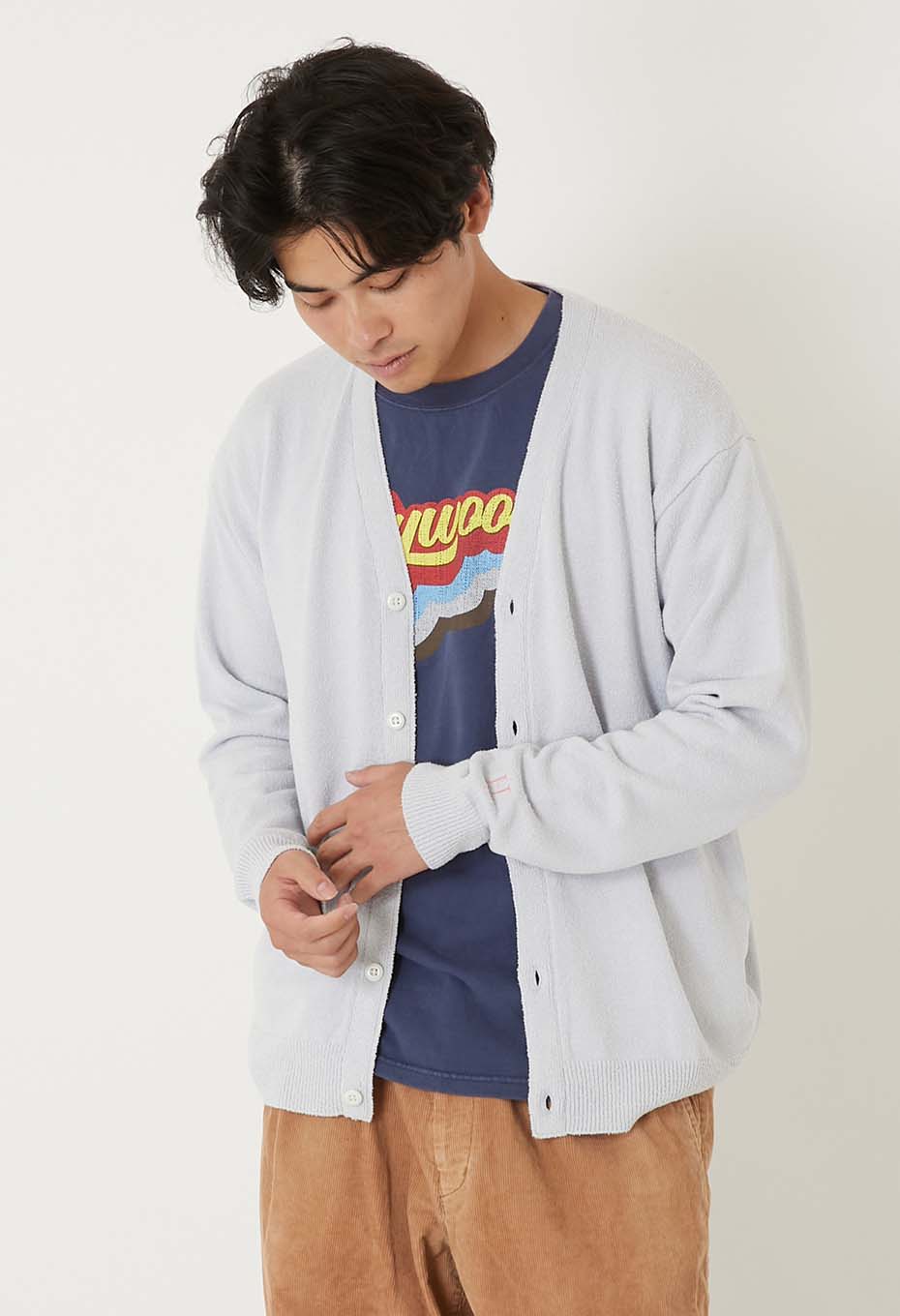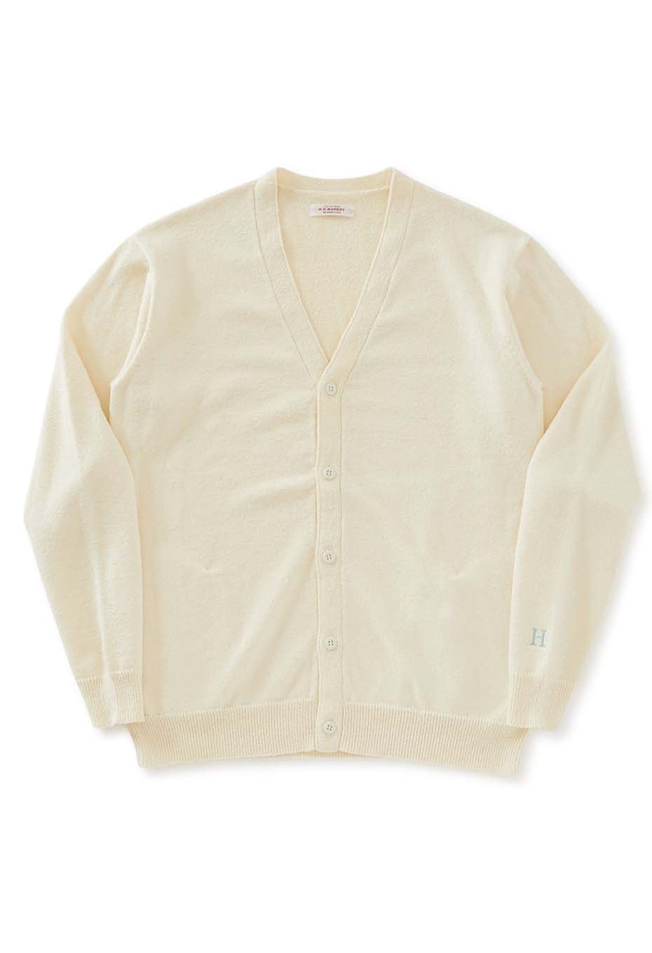 H刺しゅうのワンポイントがアクセントのベーシックなスプリングニットのカーディガンです。鮮やかなカラー展開も特徴です。