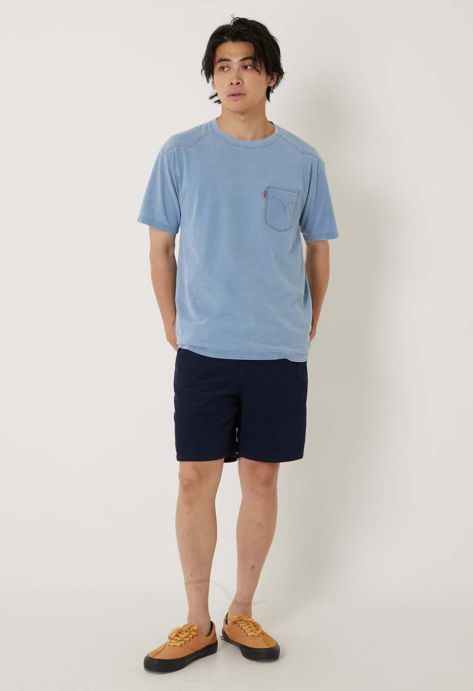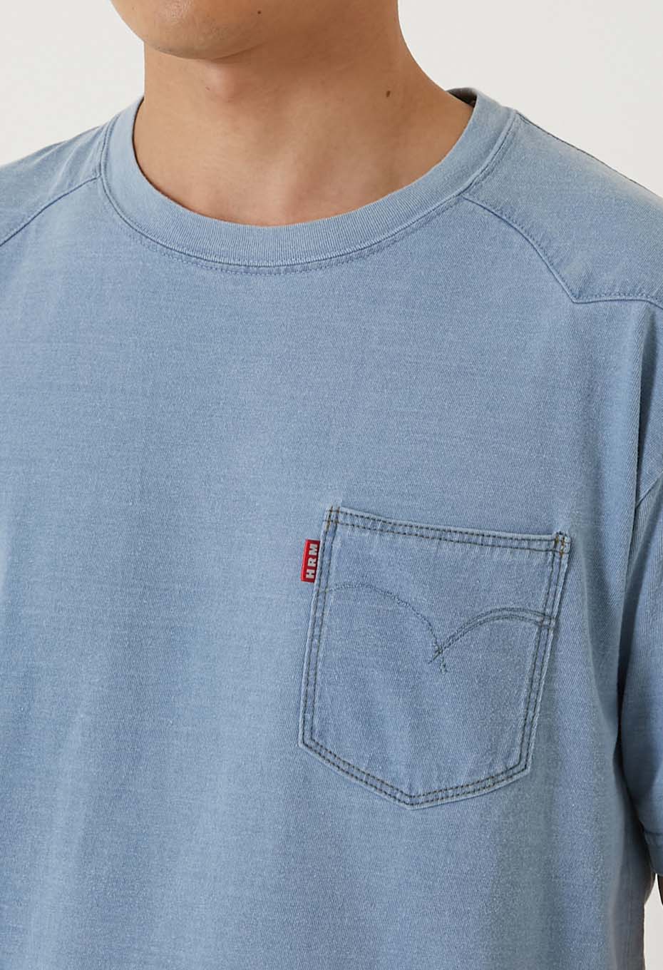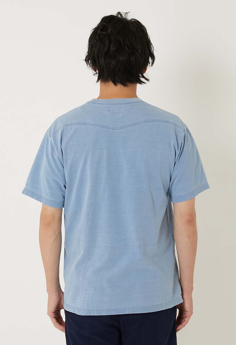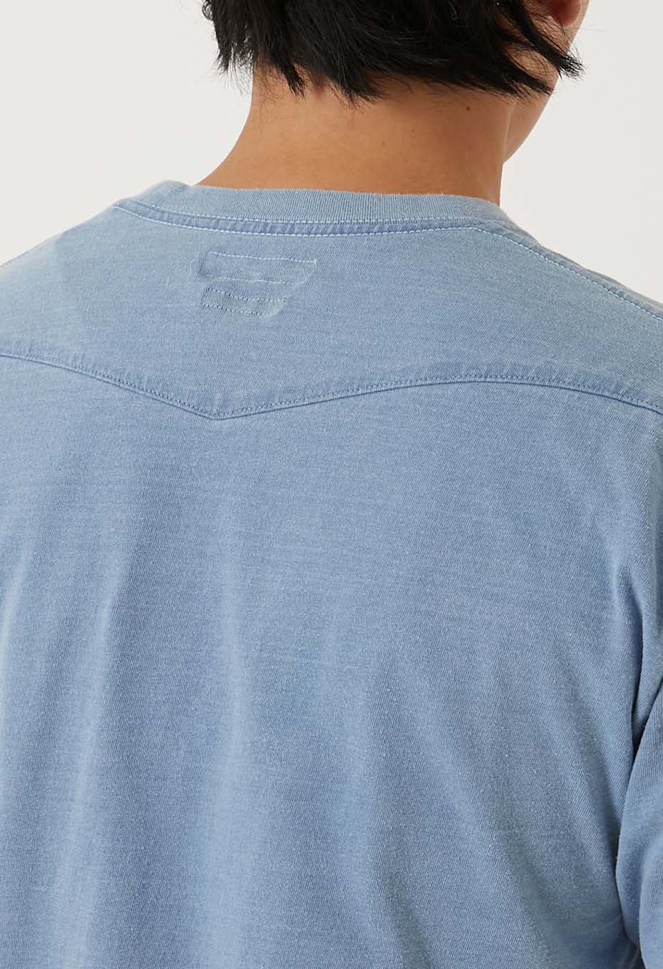 淡くインディゴ染めを施したウエスタンヨーク、ポケットにあしらわれたオリジナルアーキュエットステッチがポイントのTシャツです。