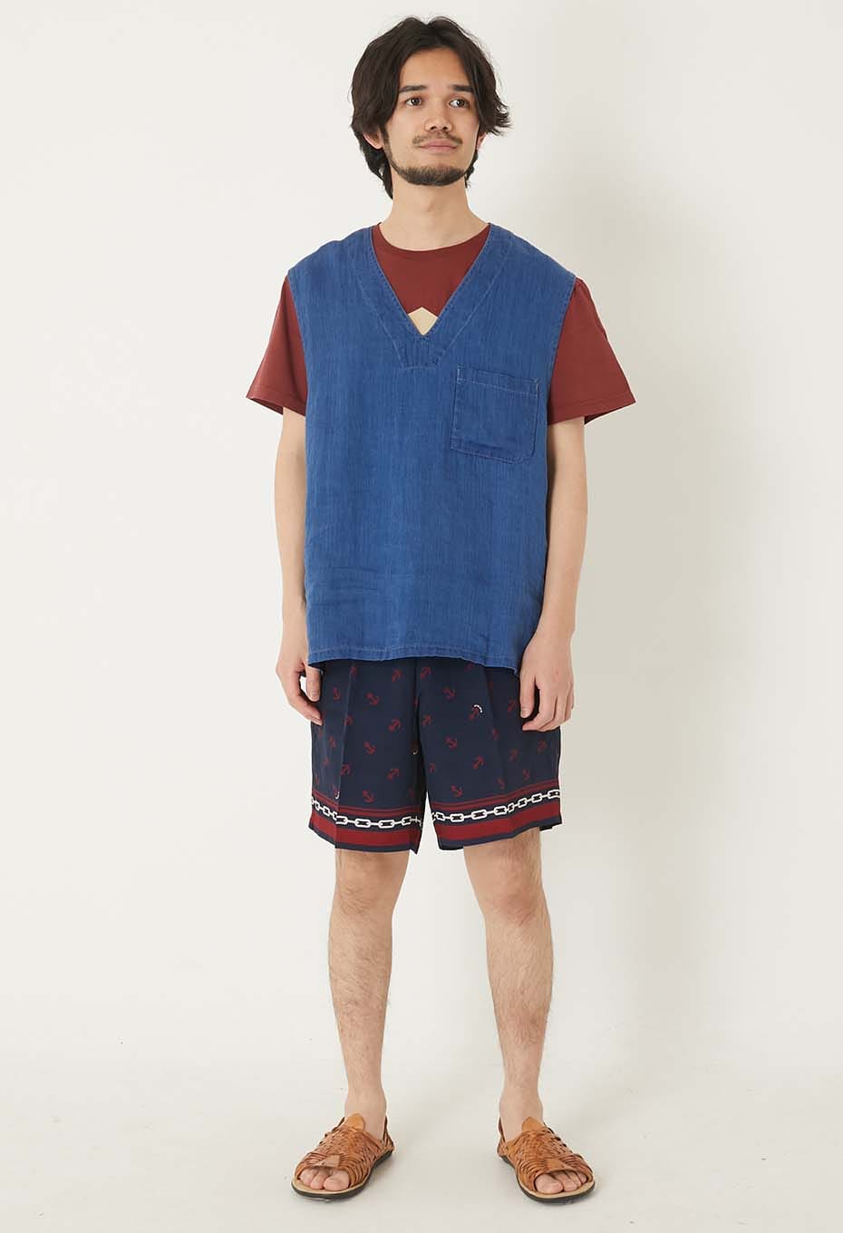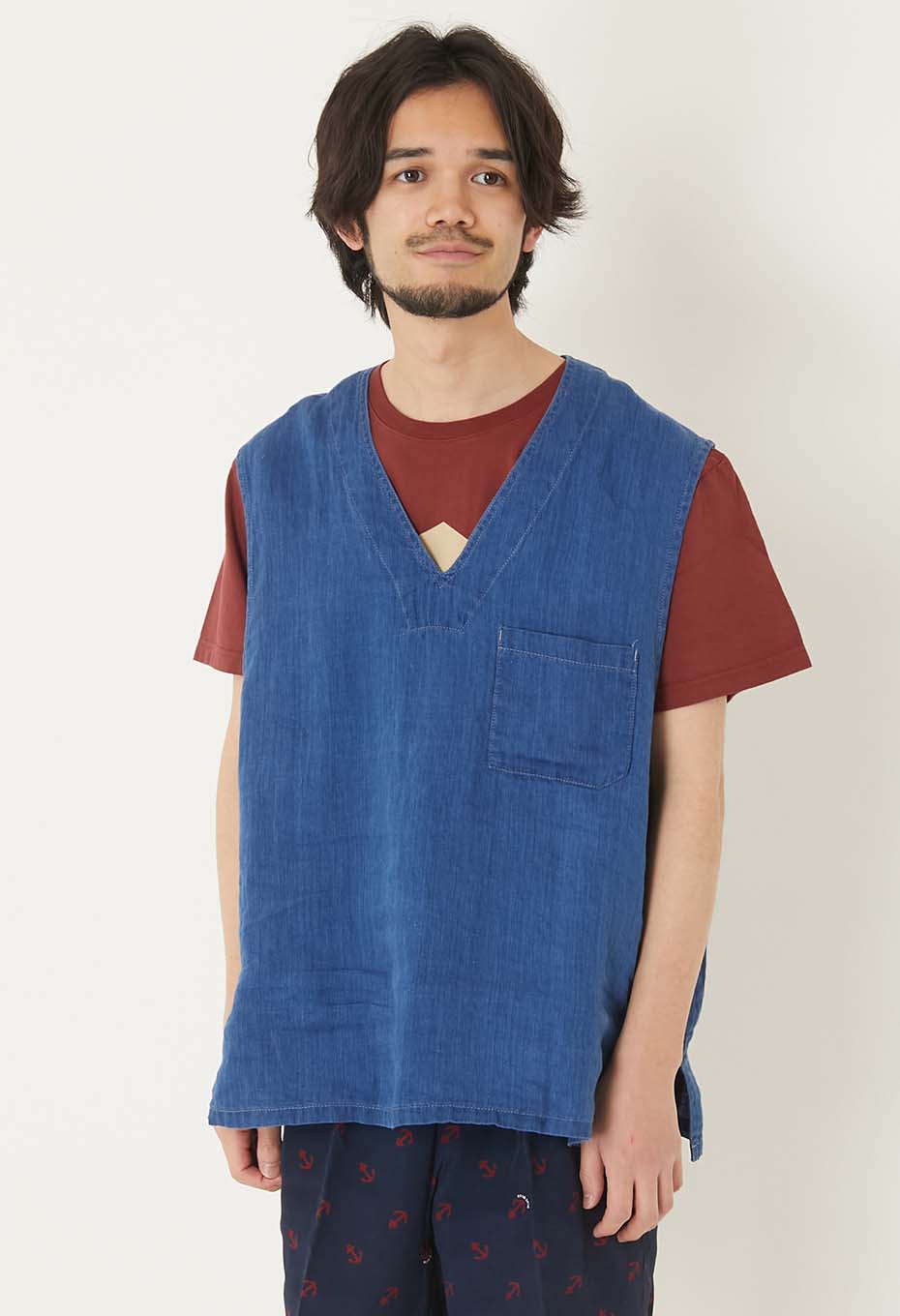 インディゴリネン ハイカウントツイル プルオーバーベスト
