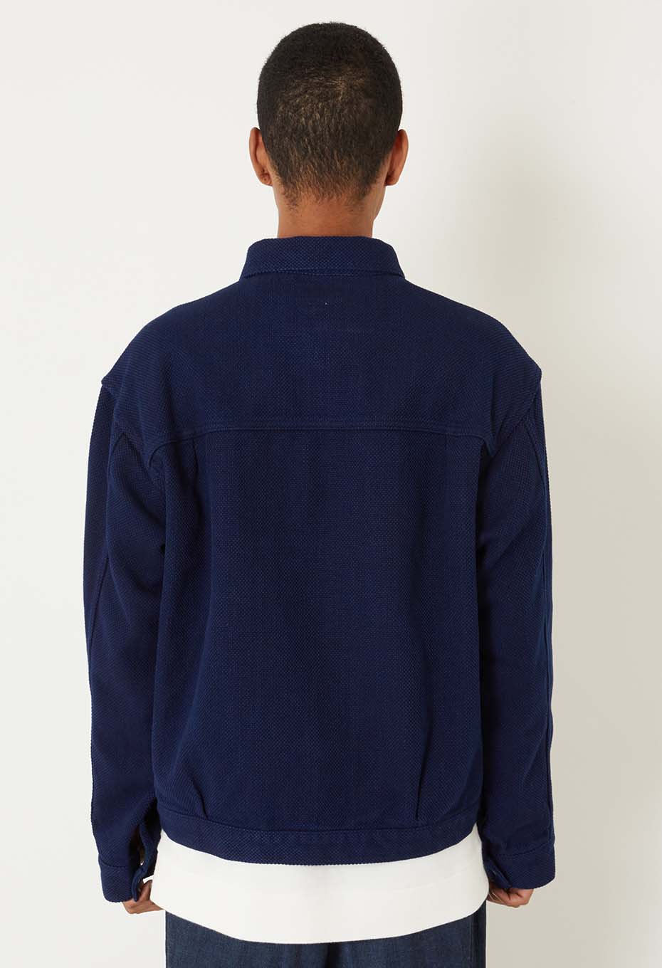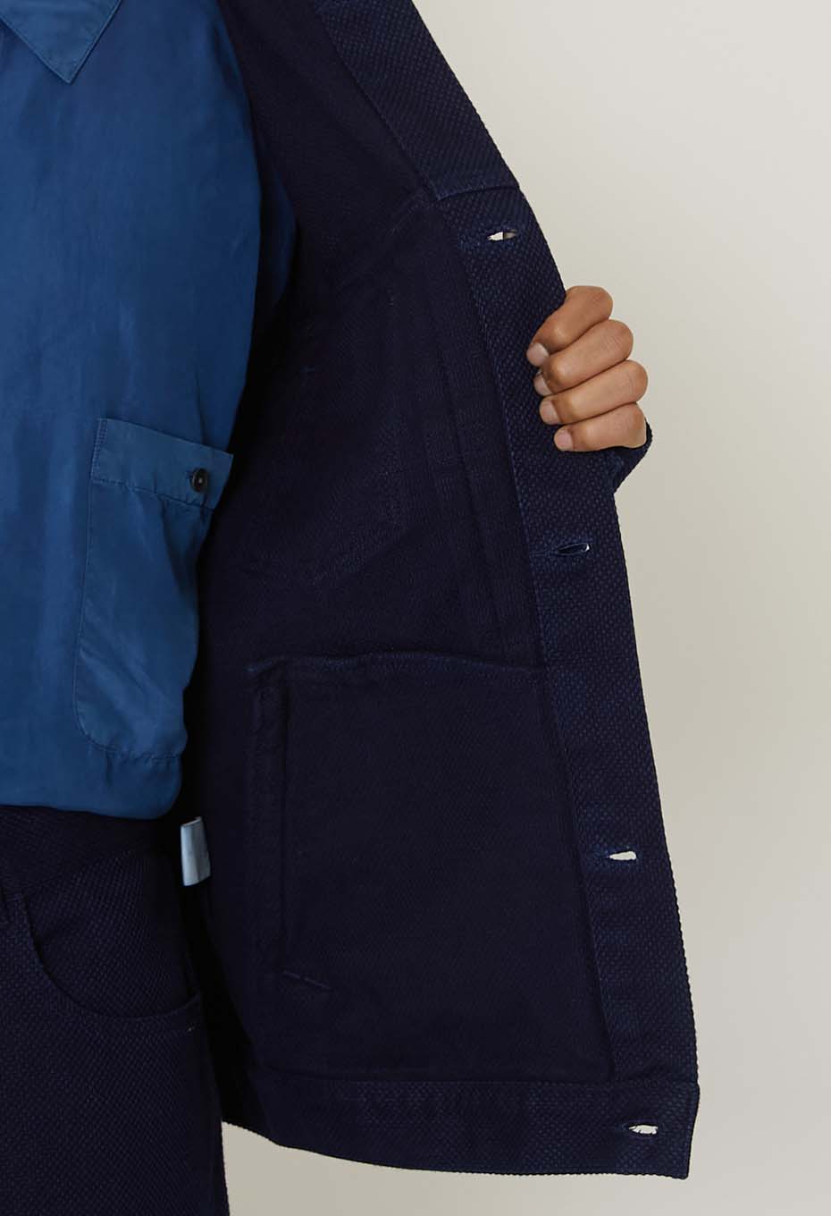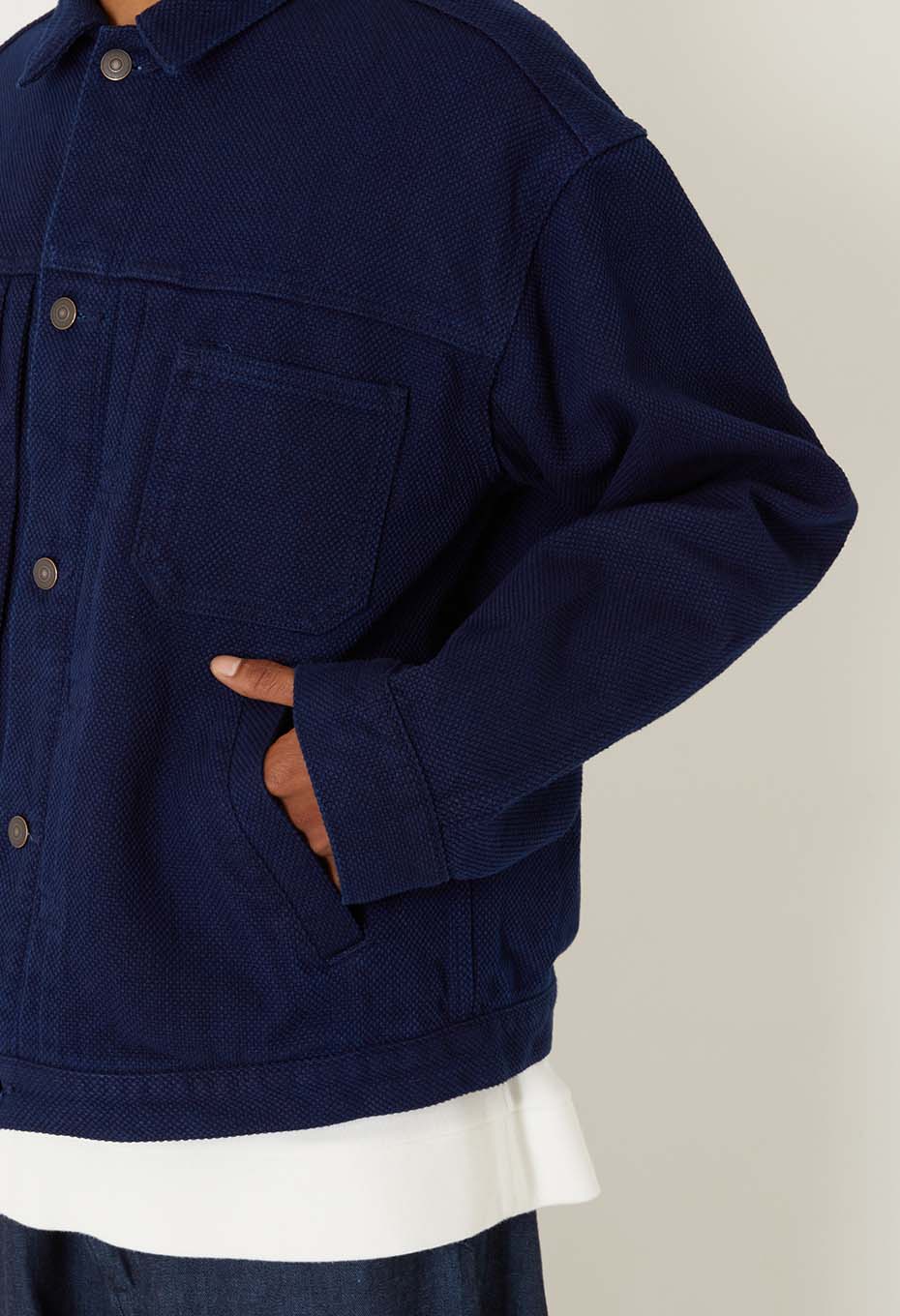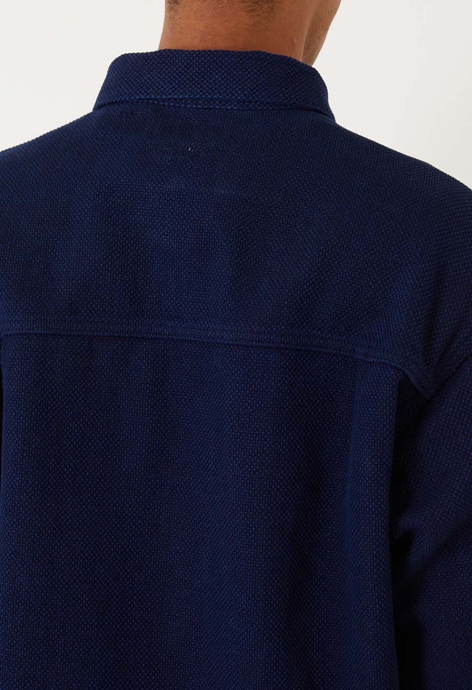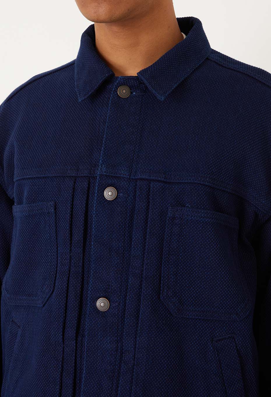 カセ染めにした本藍の糸を使用しているため、うっすらと縦に走るムラが特徴です。