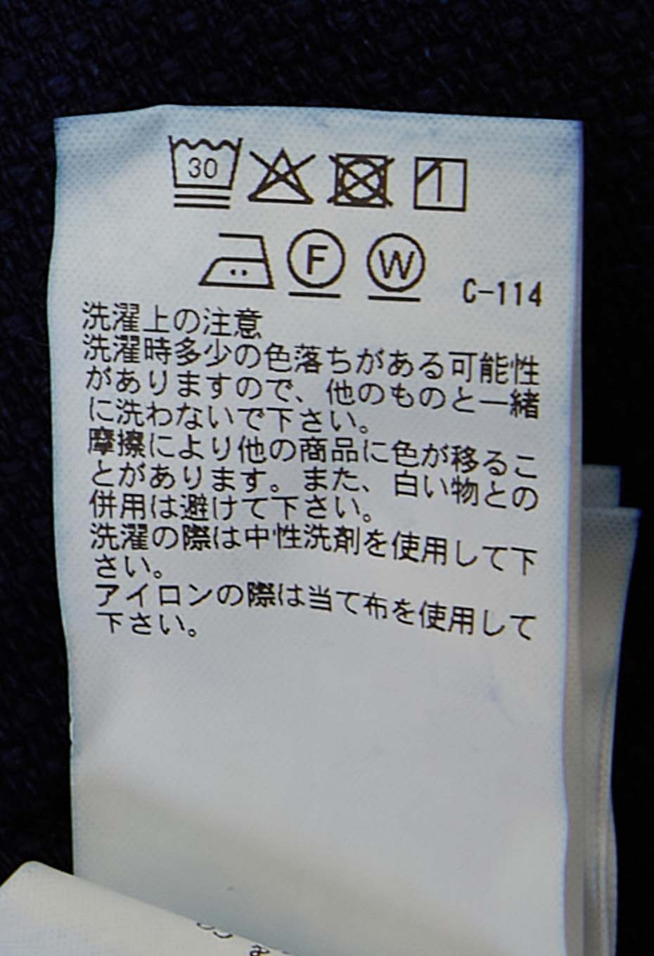 この製品は本藍染めの素材を使用していますので、繰り返し着たり、何度も洗濯することにより濃いブルーから淡いブルーに移り変わっていきます。白、又は淡色のものと組み合わせて着たり、重ね着をすると色が移りますので避けて下さい。洗濯の際は色が落ちますので単独洗いでお願いします。