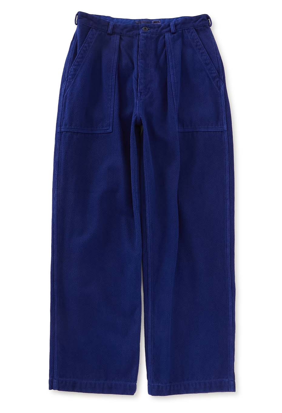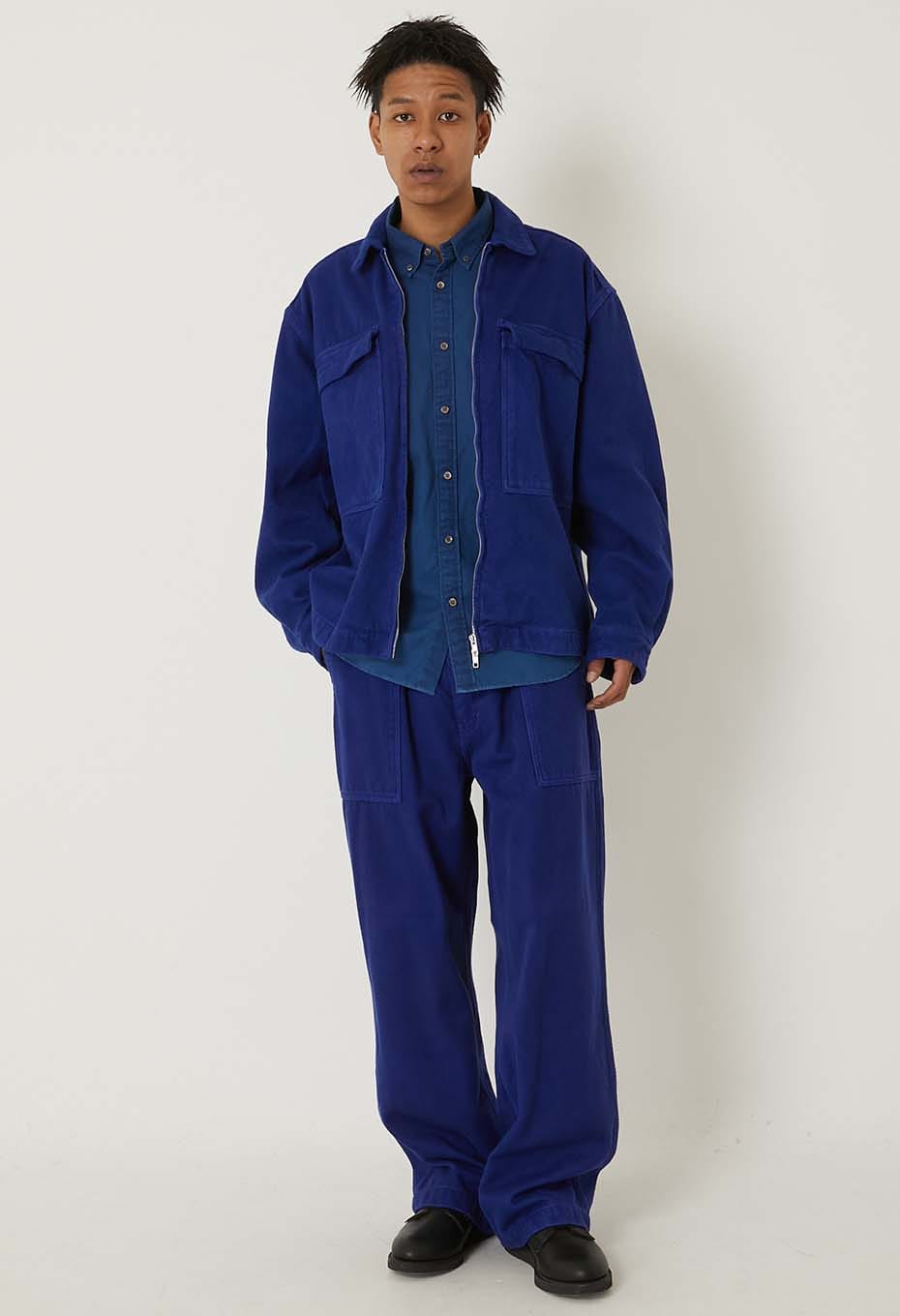 ユーロワークをベースにブラッシュアップしたベイカーズスタイルのパンツで、シンプルで着やすいフォルムにフロントの1タックポケットが表情をプラスしています。ブルーインディゴの表情や、着るほどに変化する経年変化をお楽しみください。