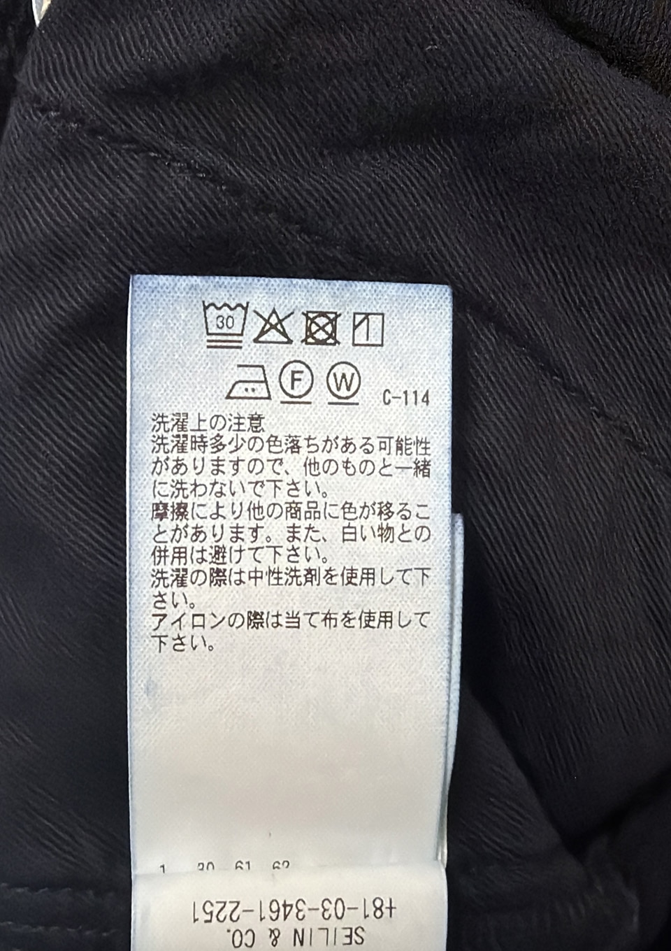 この製品は、インディゴ染料で染めた素材を使用しておりますので、繰り返し着たり、何度も洗濯することにより、濃いブルーから淡いブルーに移り変わっていきます。白又は淡色のものと組み合わせて着たり、重ね着をすると色が移りますので避けてください。洗濯の際は色が落ちますので単独洗いでお願いします。