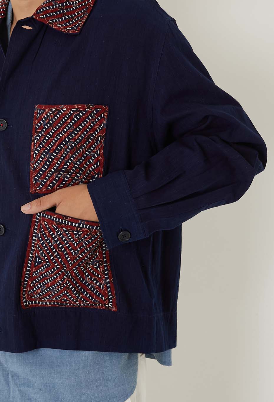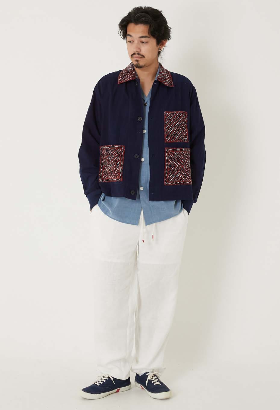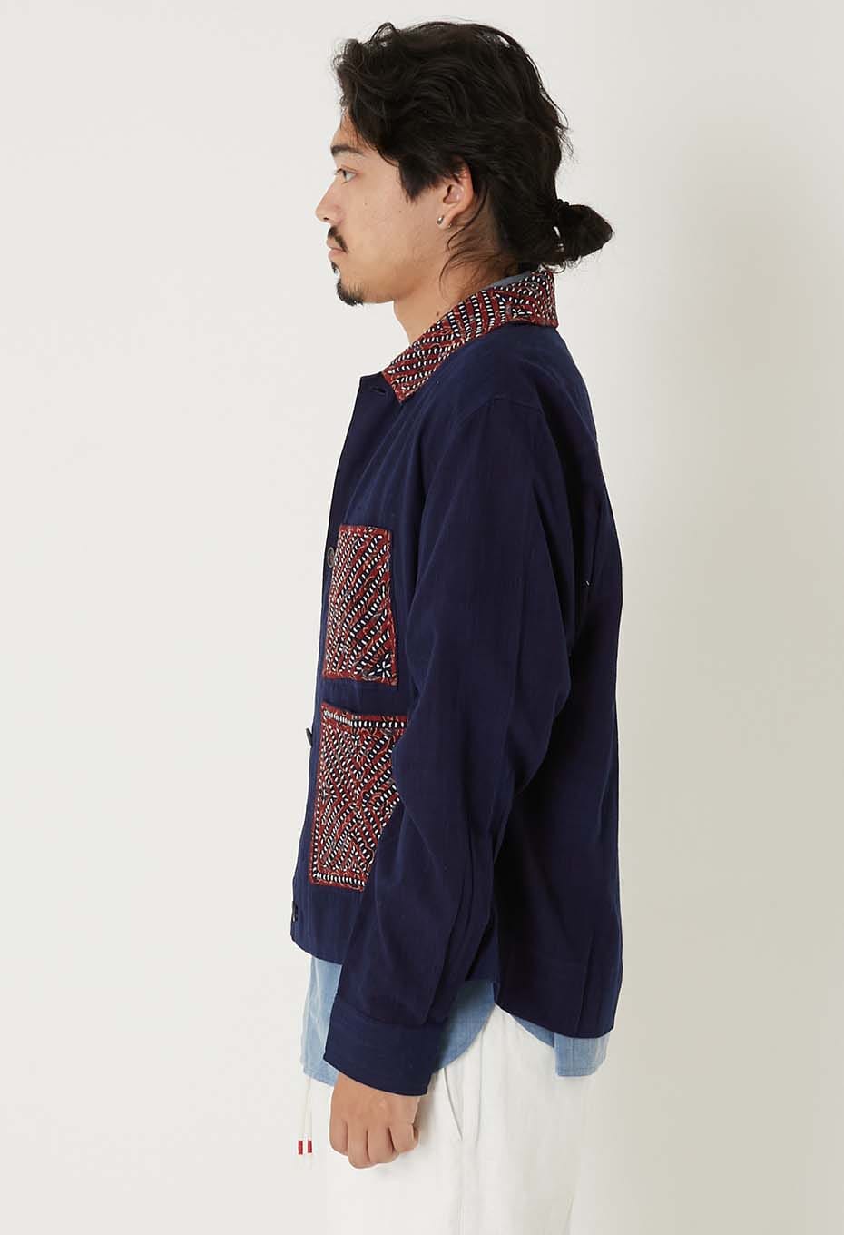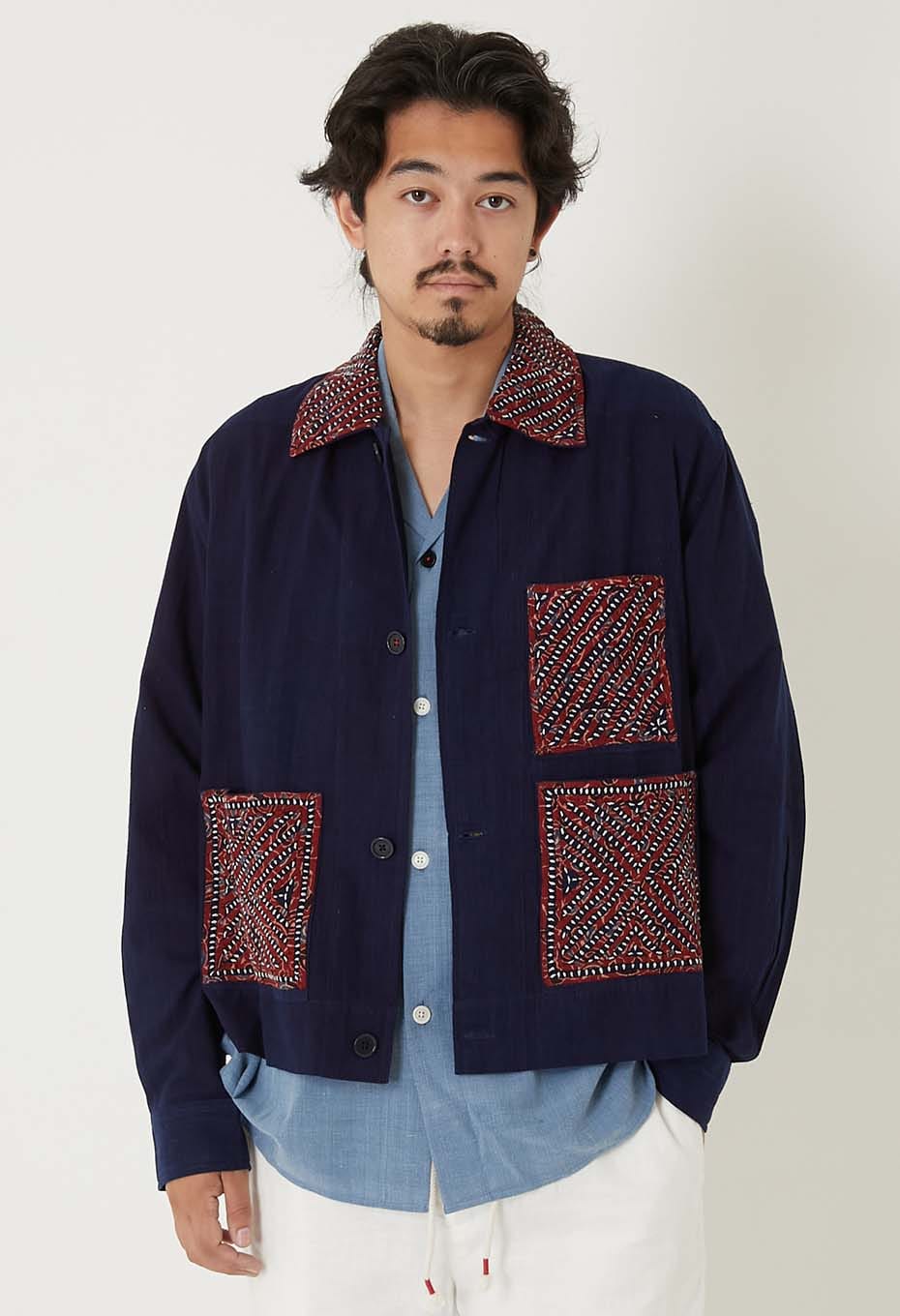 - 伝統芸術の保存に取り組む企業「カラ・ラクシャ」で働くラバリ族の女性たちにより制作された刺しゅうのアップリケを用いた生地のカバーオールです。ラバリ族はもともと遊牧民でしたが、時代の変化とともに減少しており、現在ではグジャラート州カッチに定住した人々もいます。伝統を残すためにオリジナリティ溢れる唯一無二のアイテムを作り続けています。