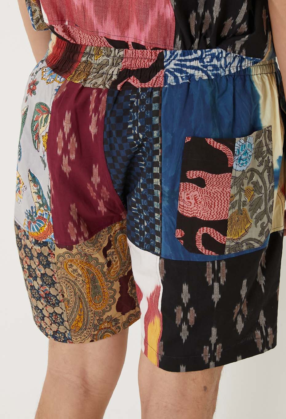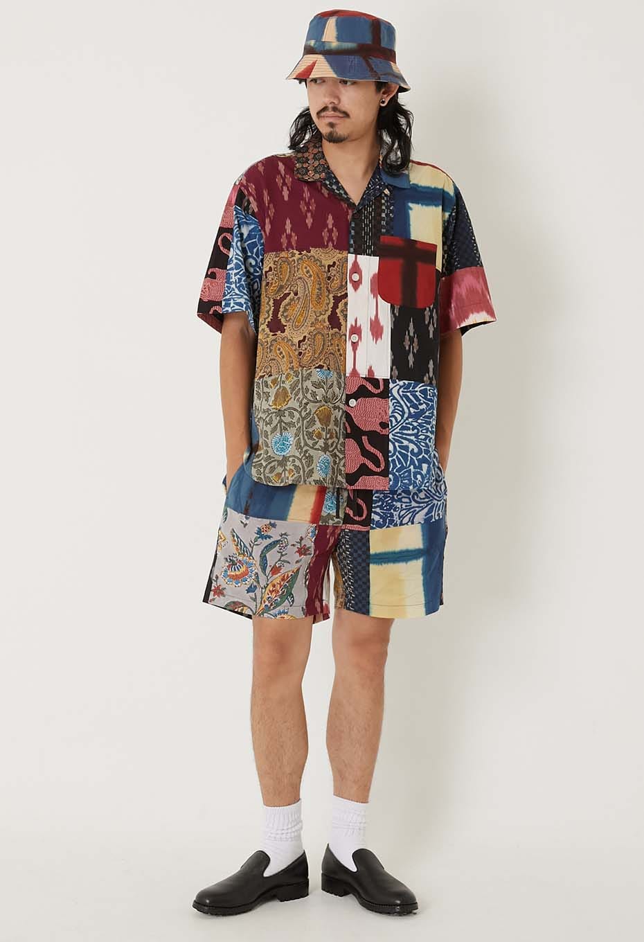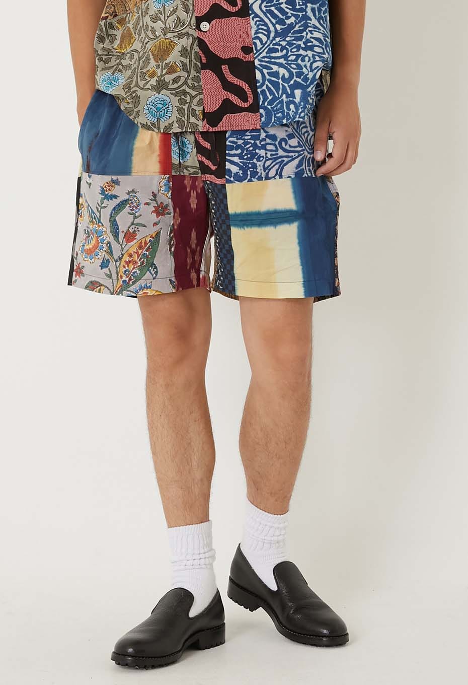 - SS25コレクションから厳選した生地のパッチワークを施したトラウザーズ。