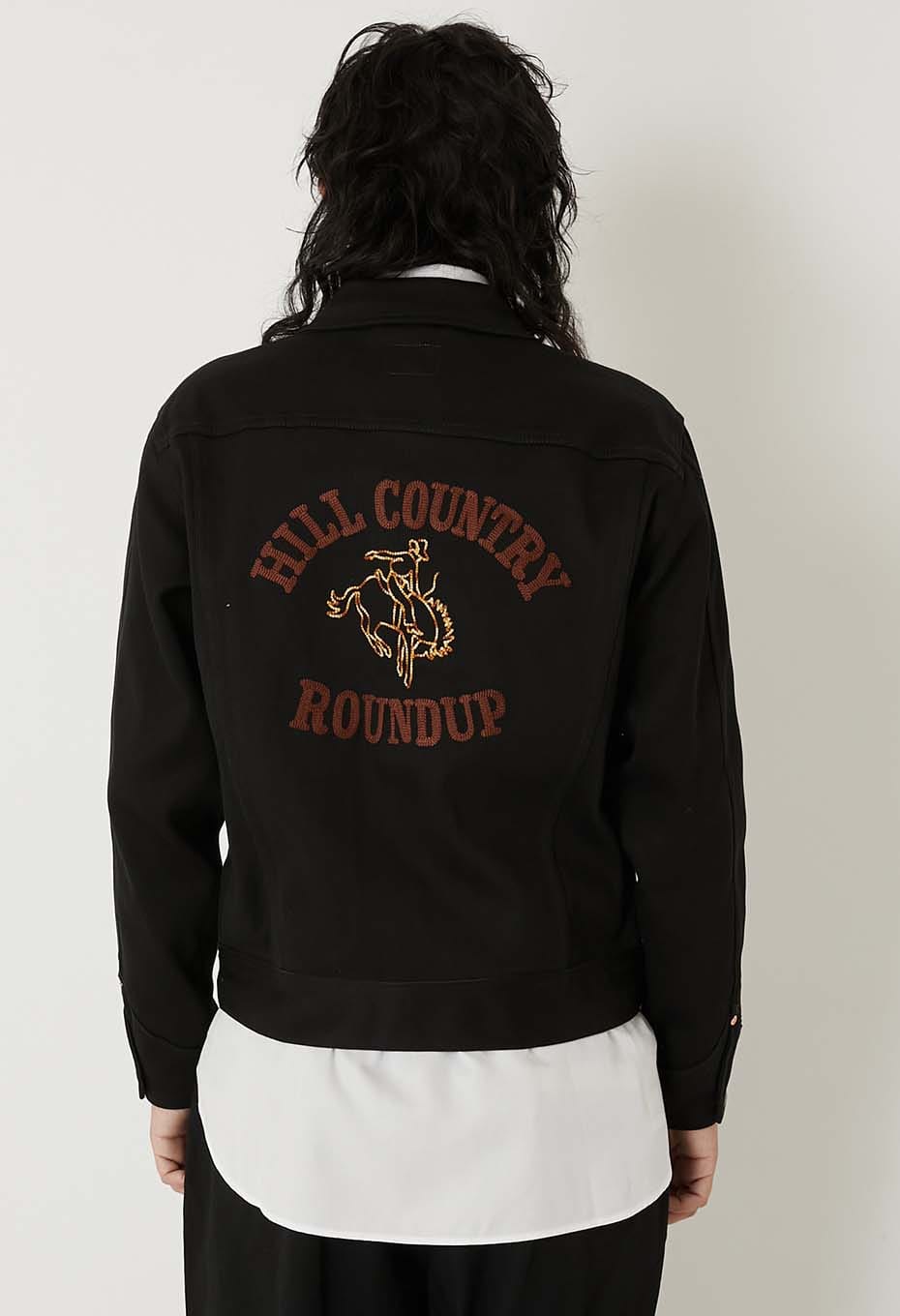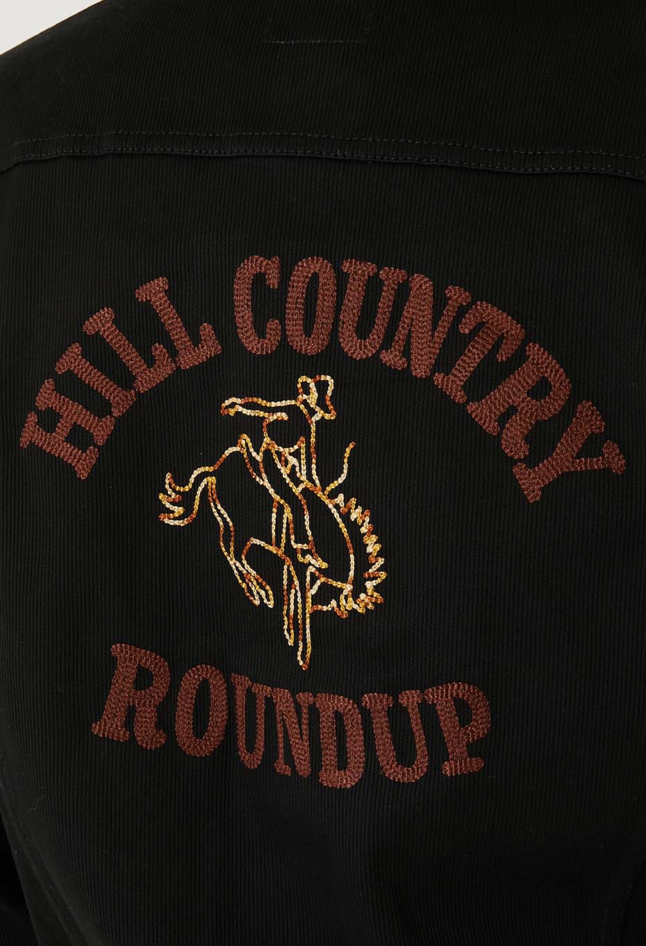 - ヴィンテージにインスパイアされた一着。「Hill Country Roundup」のアートワーク刺しゅうがバックに施されています。生地はWytheのお気に入りであるワークウェアファブリックの一つ。非常に丈夫でありながらとても柔らかく、しなやかな日本製のベッドフォードコードを使用した生地です。使い込むほど柔らかくなるため、経年変化もお楽しみいただけます。スリムシルエット、ショート丈。職人さんが一点ずつ丁寧にチェーン刺しゅうを施しているため、仕上がりに若干の個体差がありますが、手仕事ならではの味わいを存分に感じられる贅沢な個体差です。