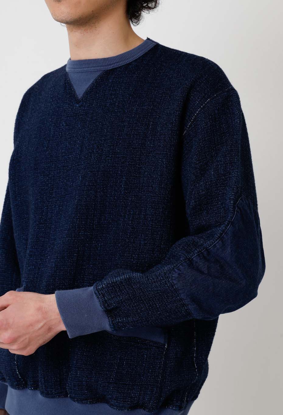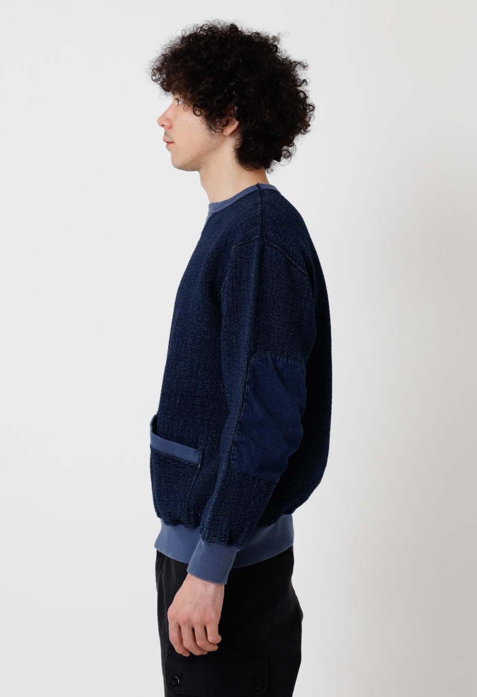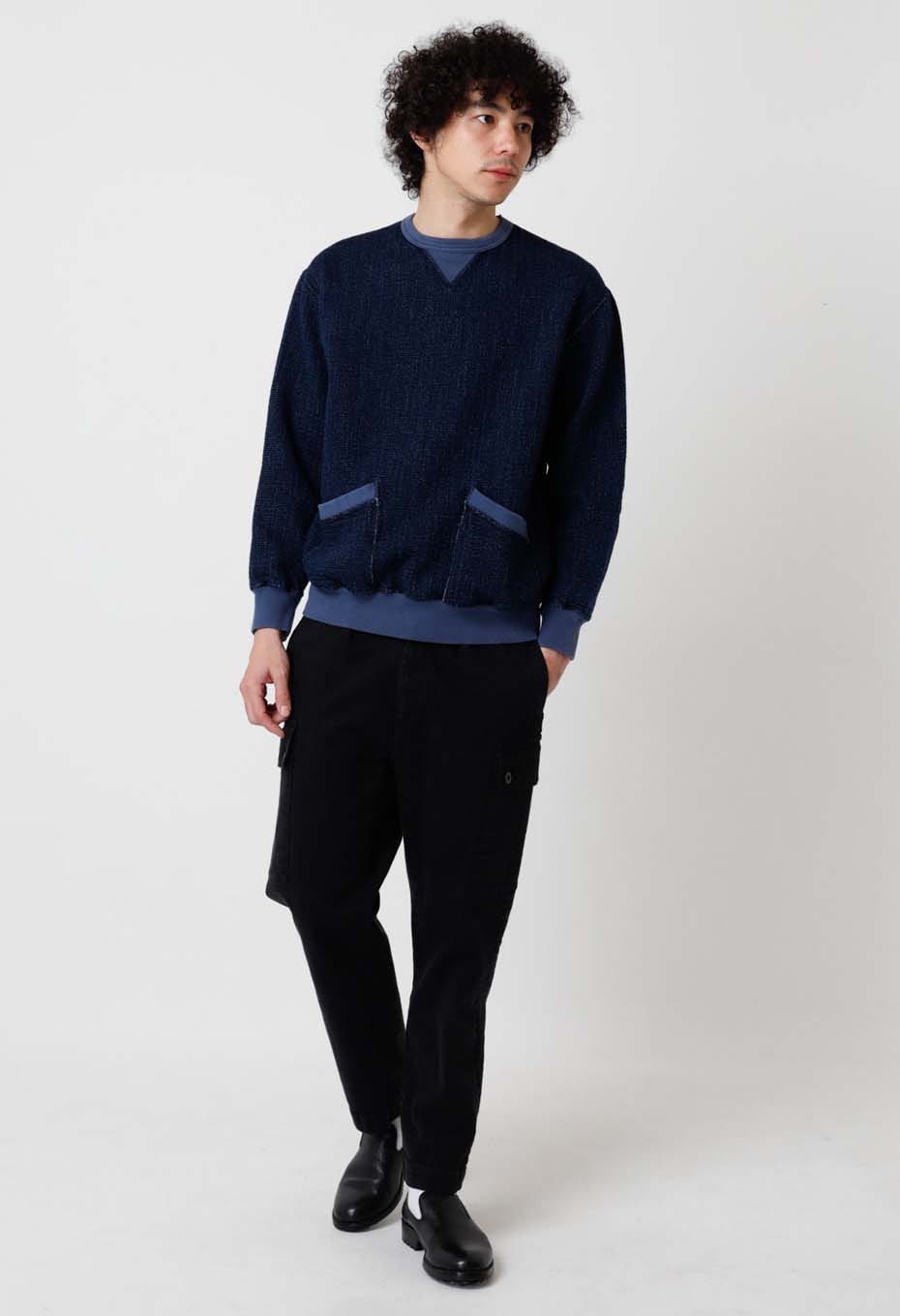 フロージャカード デニムセパレートポケット クルーネックスウェットシャツ