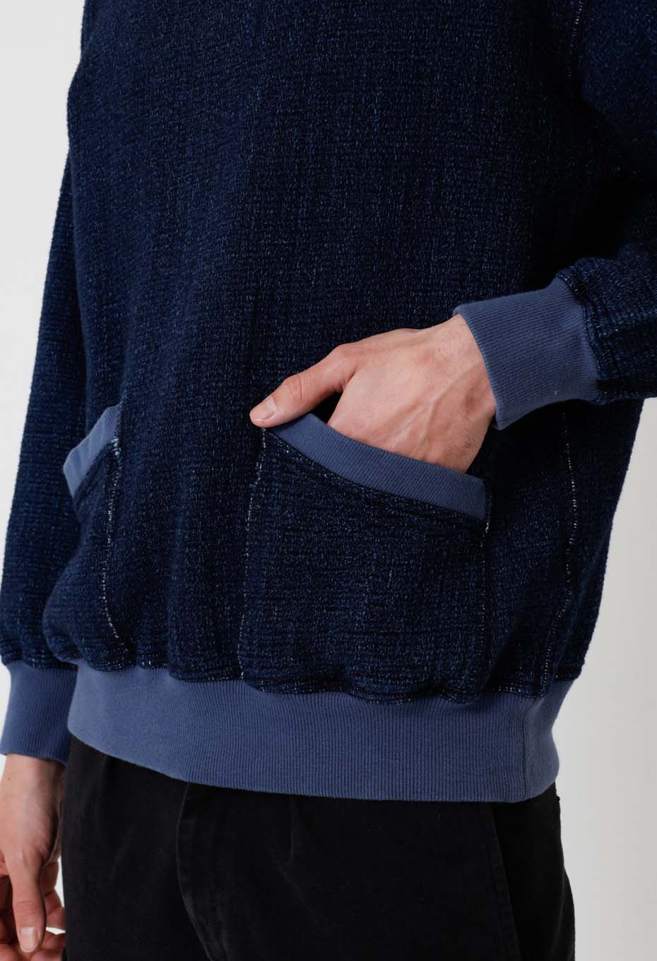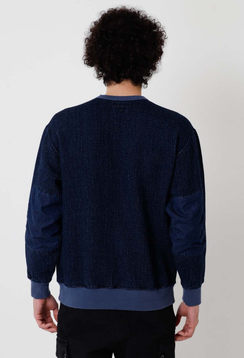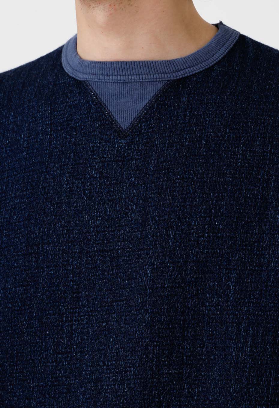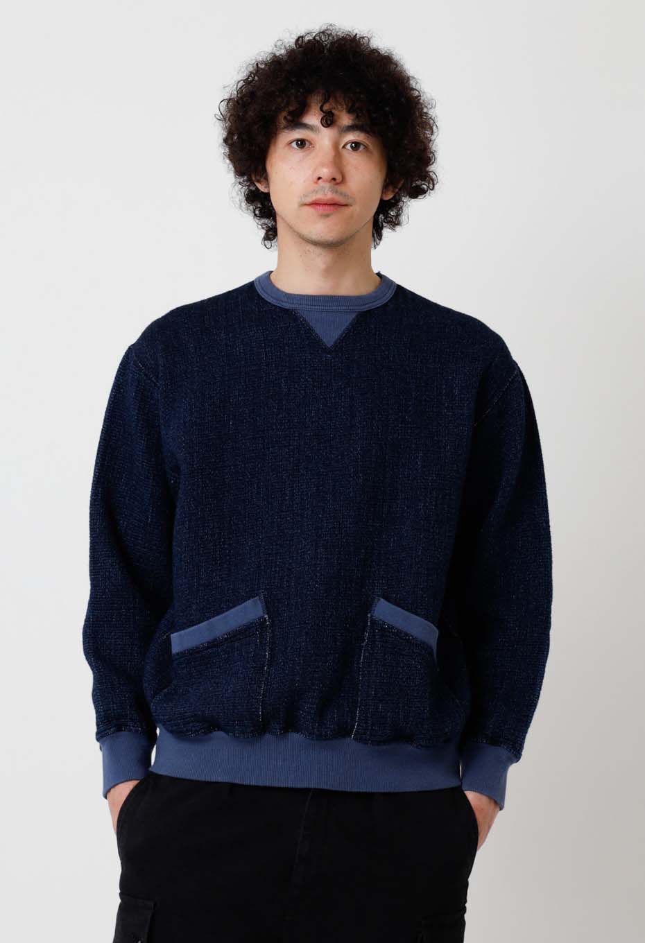 フロージャカード デニムセパレートポケット クルーネックスウェットシャツ