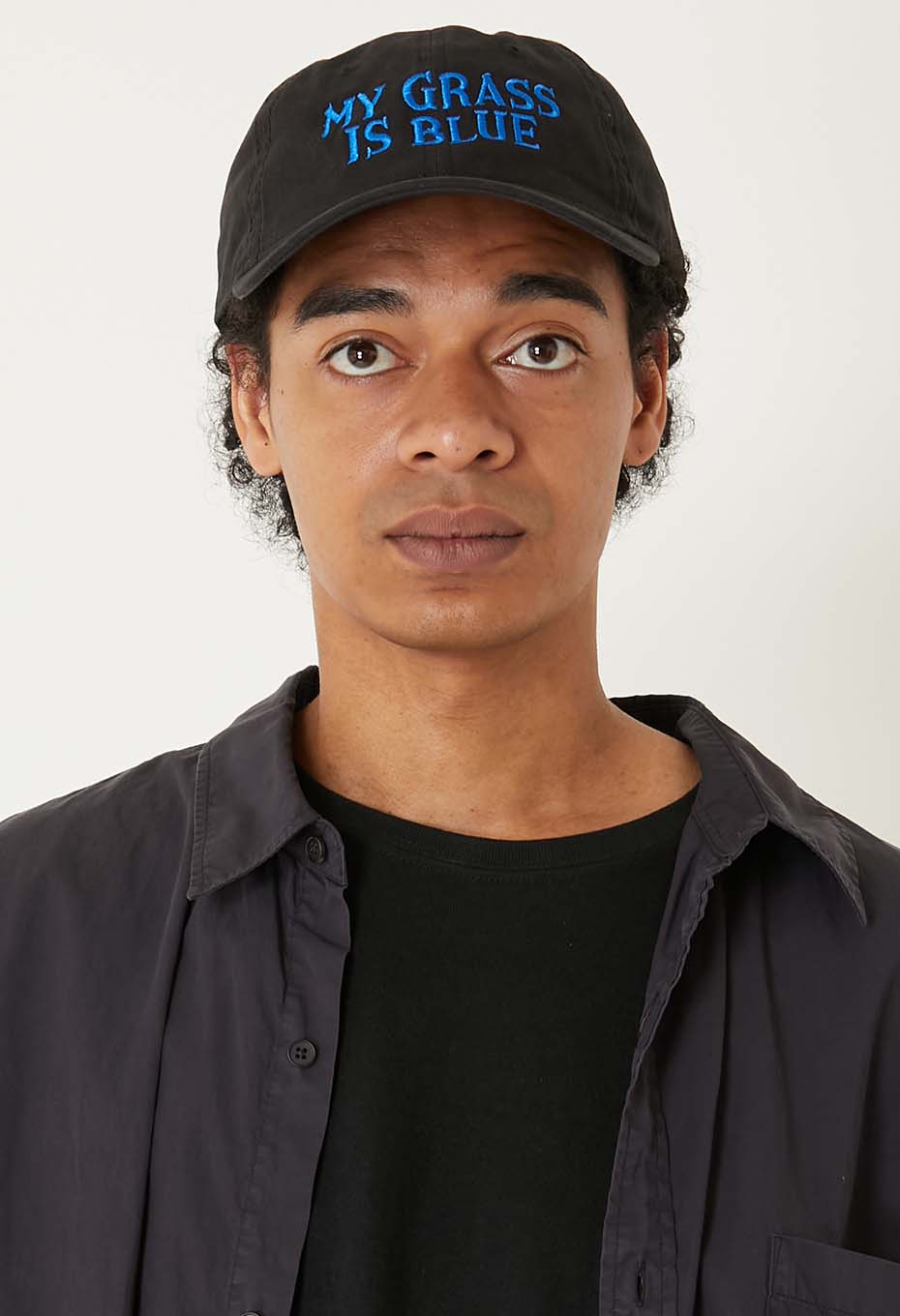 - 「MY GRASS IS BLUE」はアメリカのサザン・ロックバンド「Lynyrd Skynyrd」のアルバム「Street Survivors」のカバー写真で着用していたことで有名になりました。レオンウィルクソンがかつて着用したデザインをキャップに落とし込み、刺しゅうを施したアイテムです。