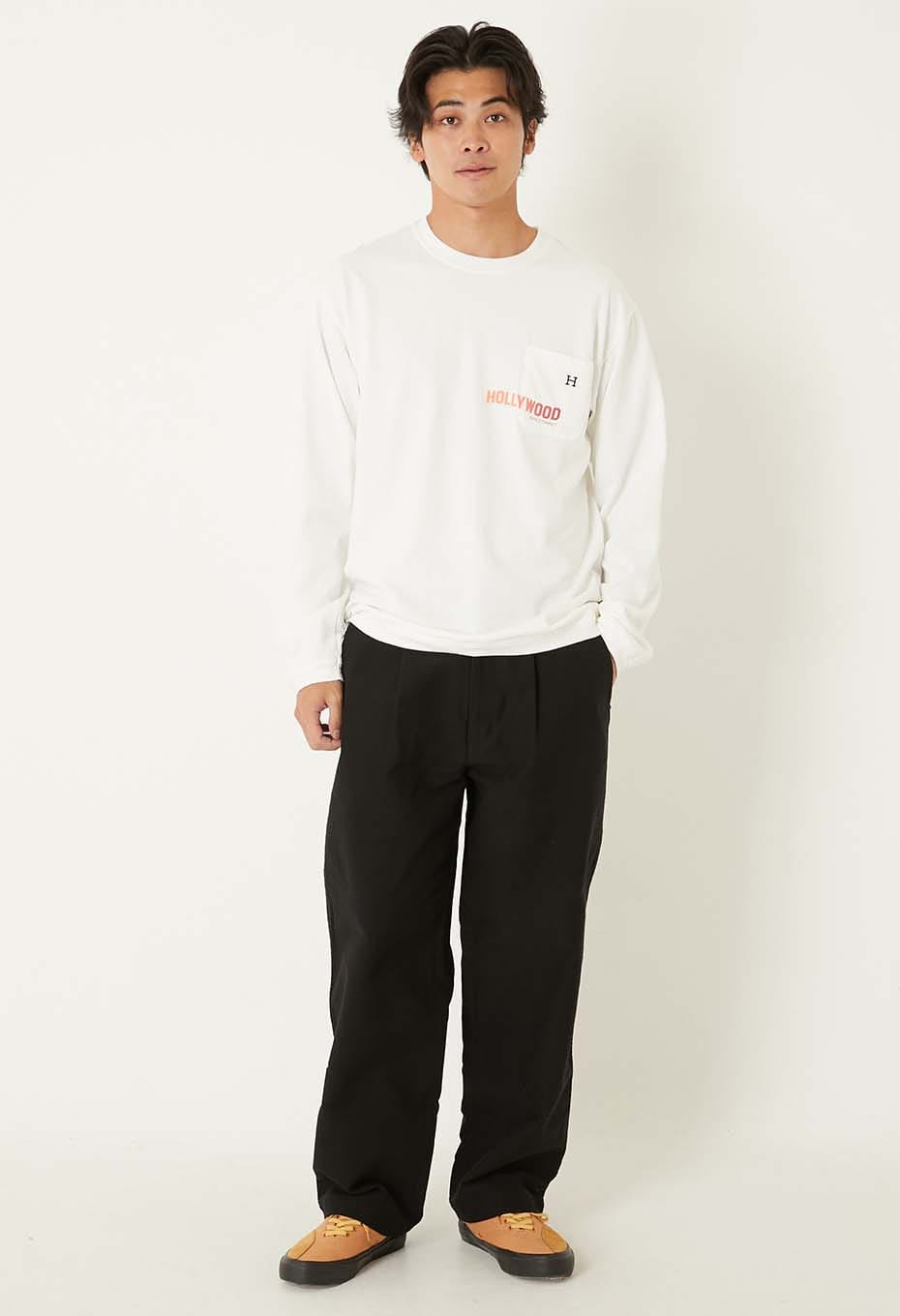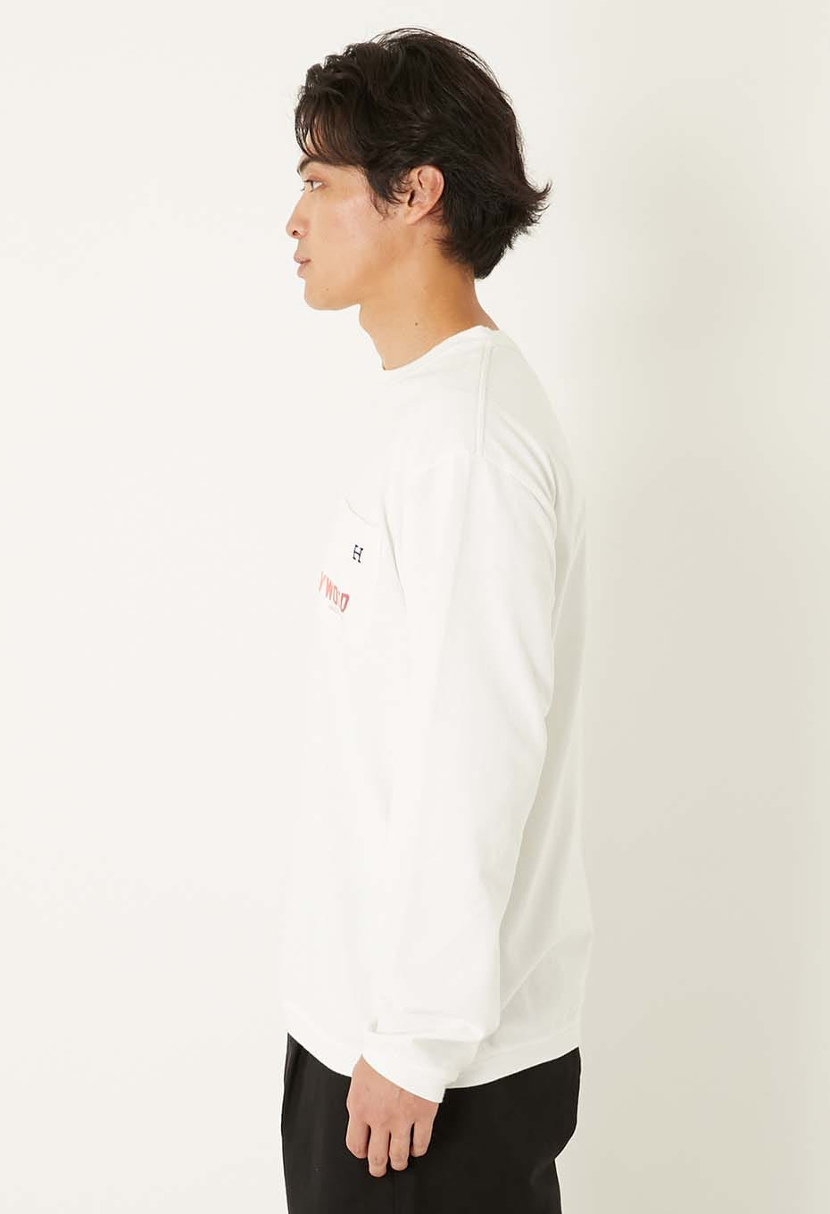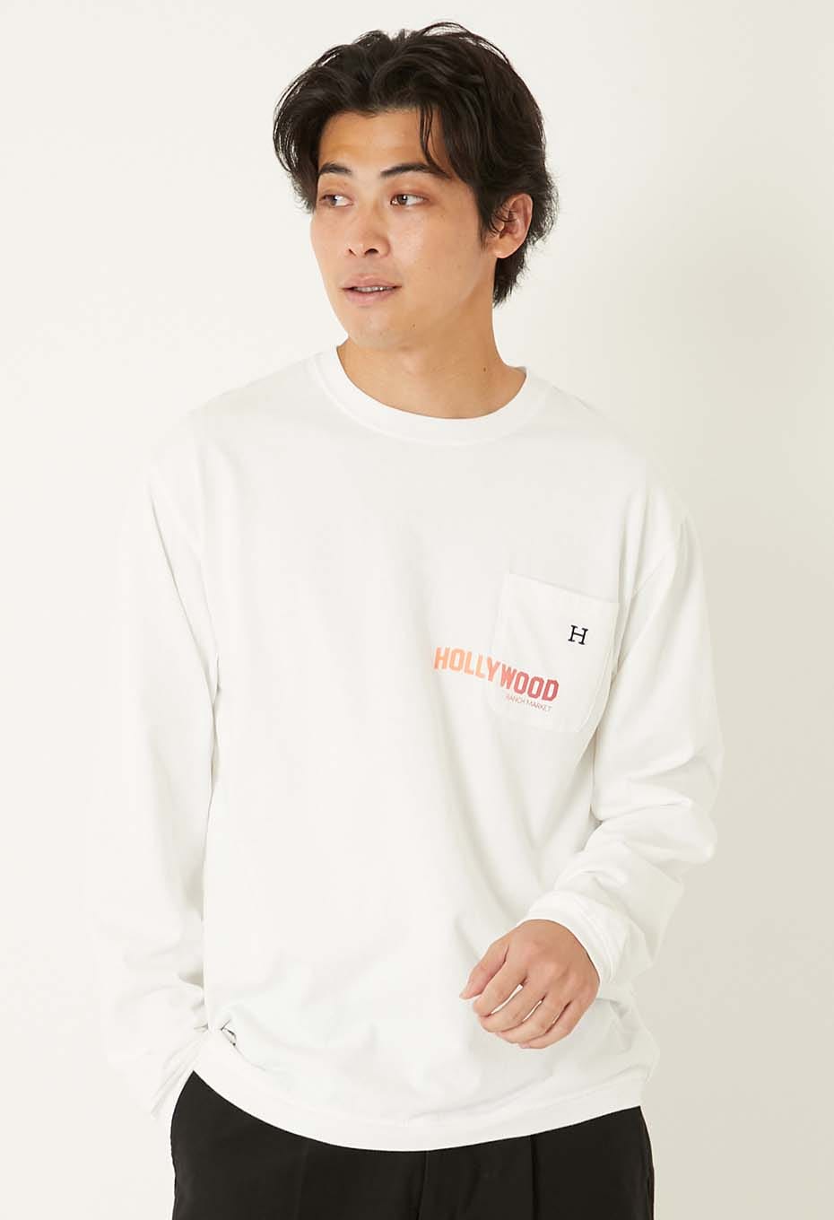 グラデーションカラーで施した「HOLLYWOOD」ロゴが印象的なプリントポケットロングスリーブTシャツです。