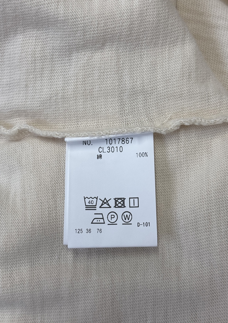 半世紀以上前のTシャツ生地を想像し、きっと雑多な綿が混ざった粗い表情の糸だろうとイメージしたオリジナル天竺。他にはない異なる繊維長が混ざった、スラブ糸のような表情豊かな生地です。