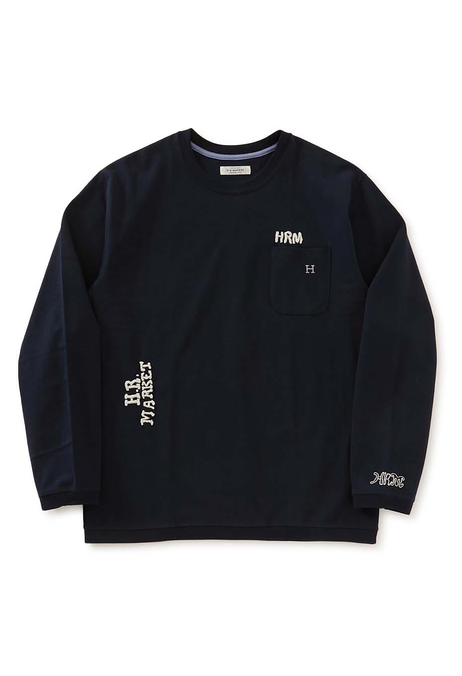 HRMハンドエンブロイダリー ナローリブポケットロングスリーブTシャツ