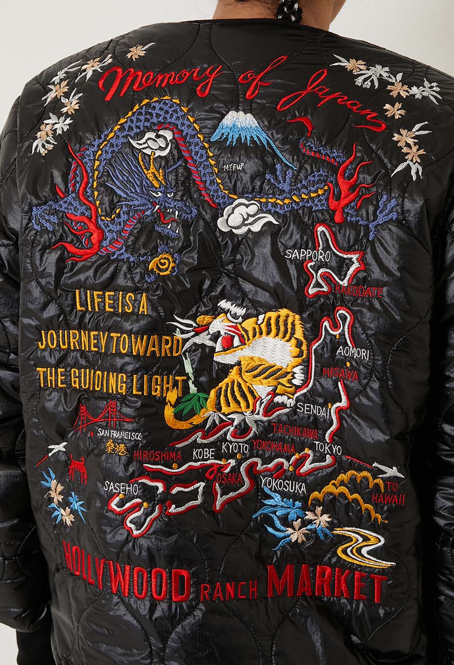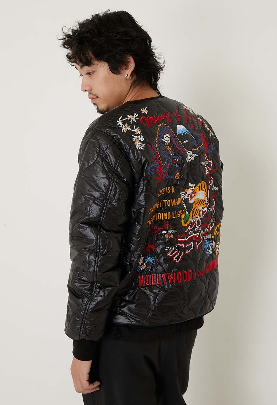 背面に施したスーベニアジャケットモチーフの刺しゅうが象徴的なライナージャケットです。